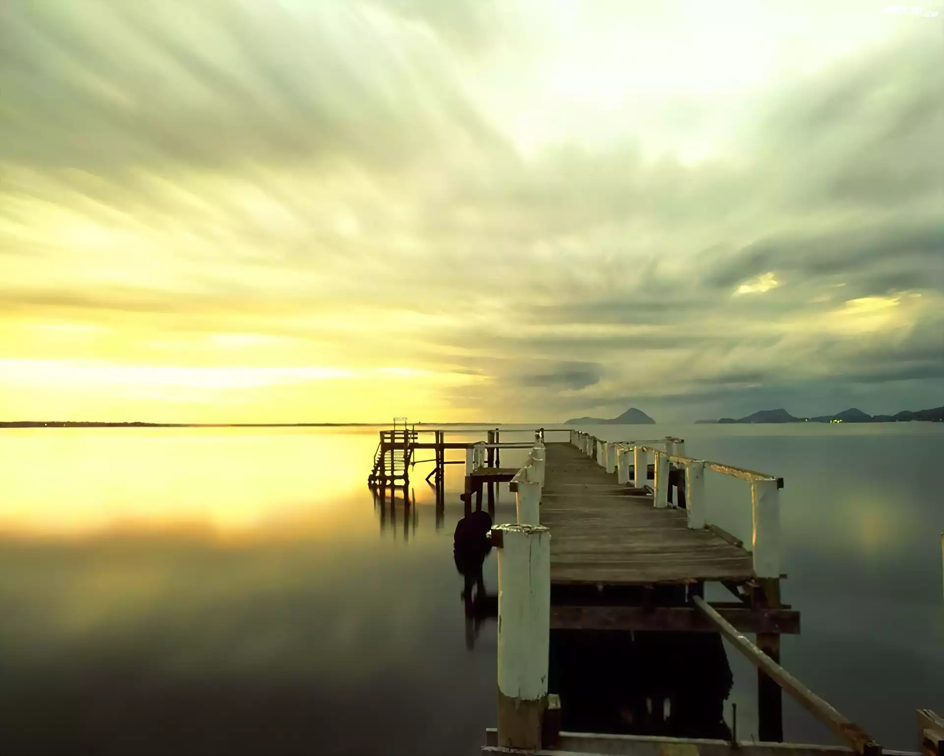 Zdjęcia, Gładka, Tafla, Wody, Pomost