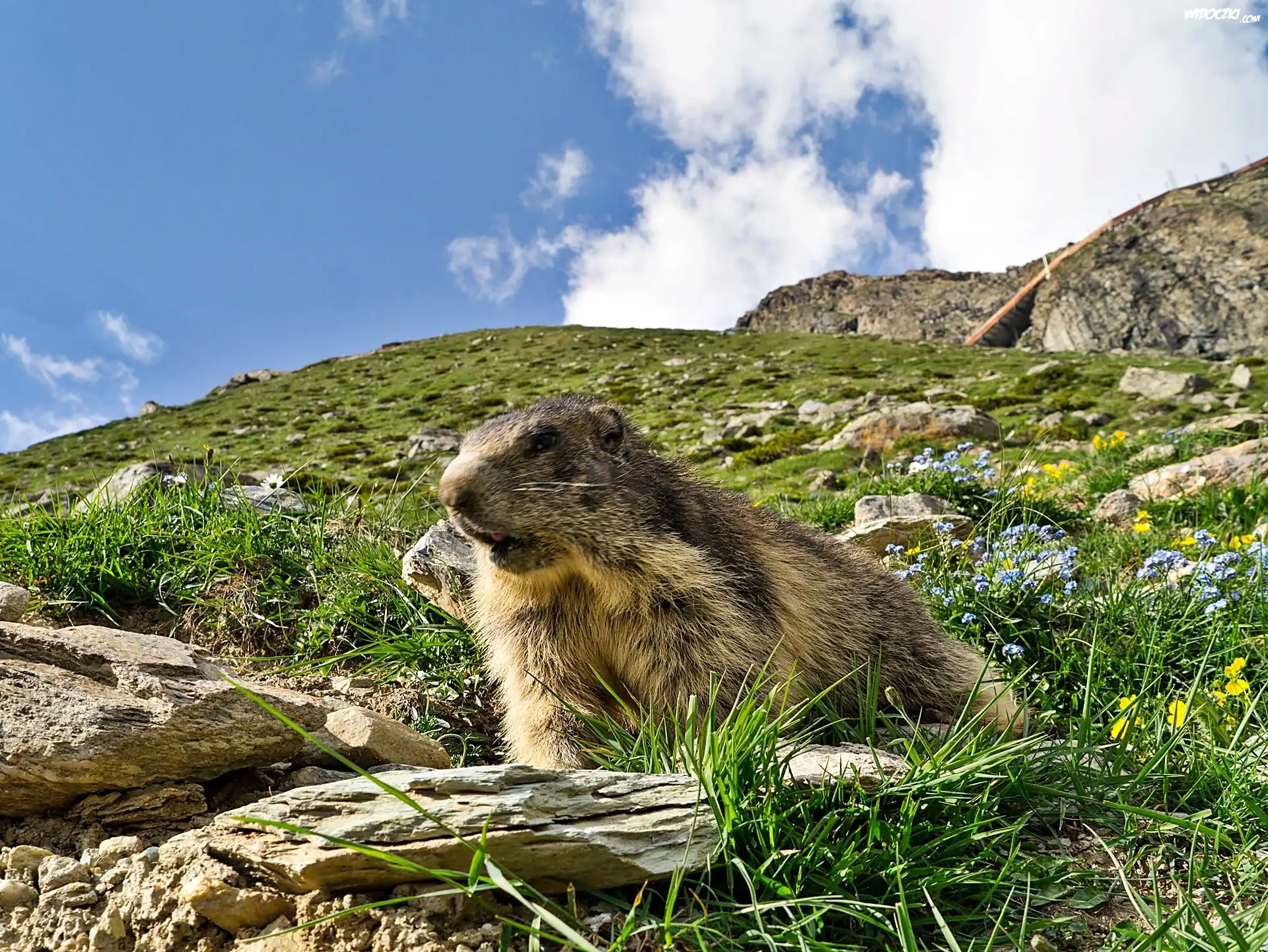 Zdjęcia, Łąka, Alpejska, Świstak, Głazy, Obłoki