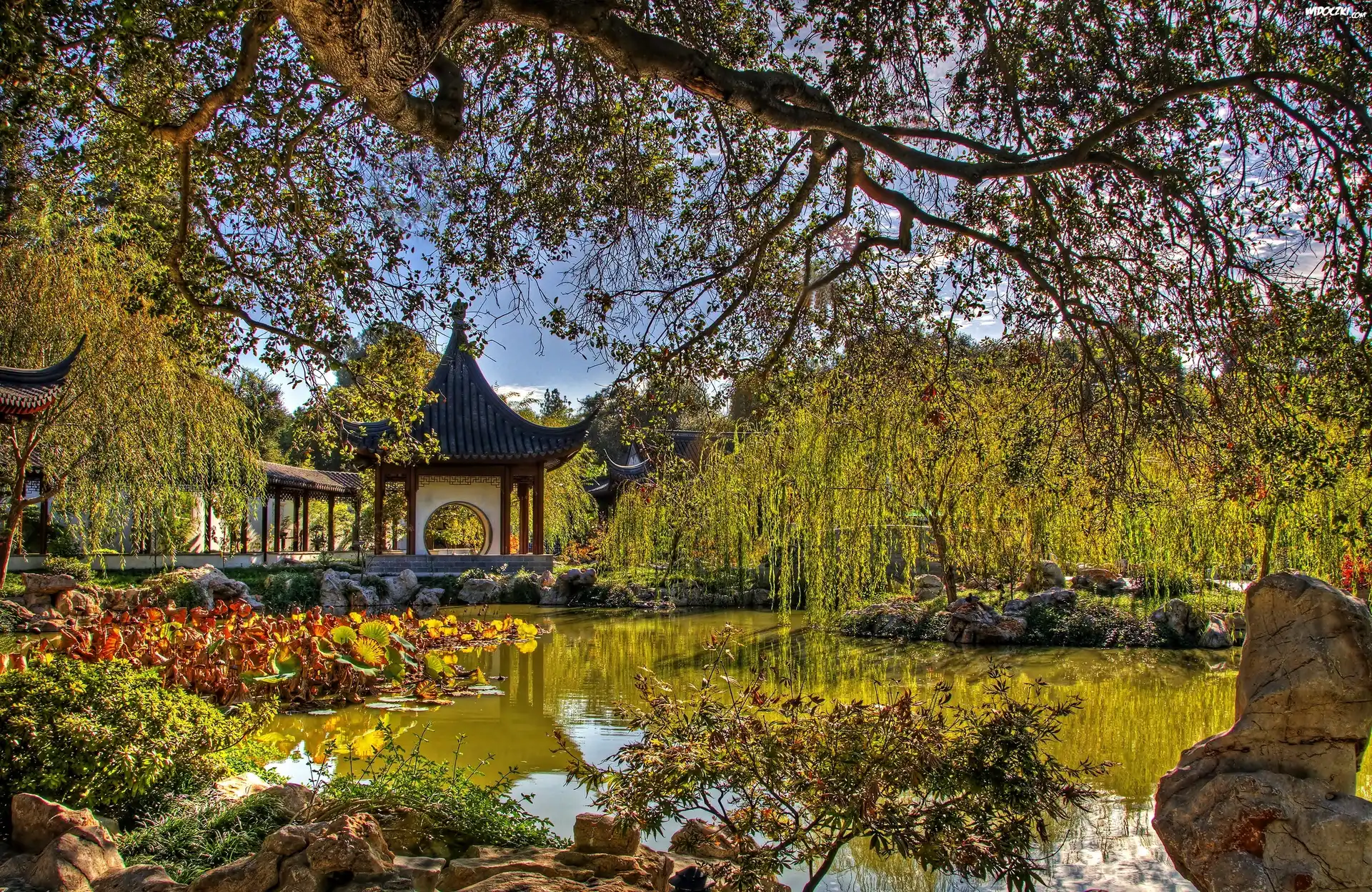 Staw, Głazy, Pawilon, Chiński, Ogród, San Marino, Kalifornia