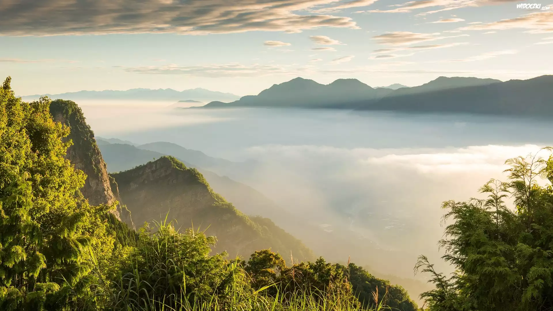 Tajwan, Gmina Alishan, Góry Alishan, Mgła, Drzewa