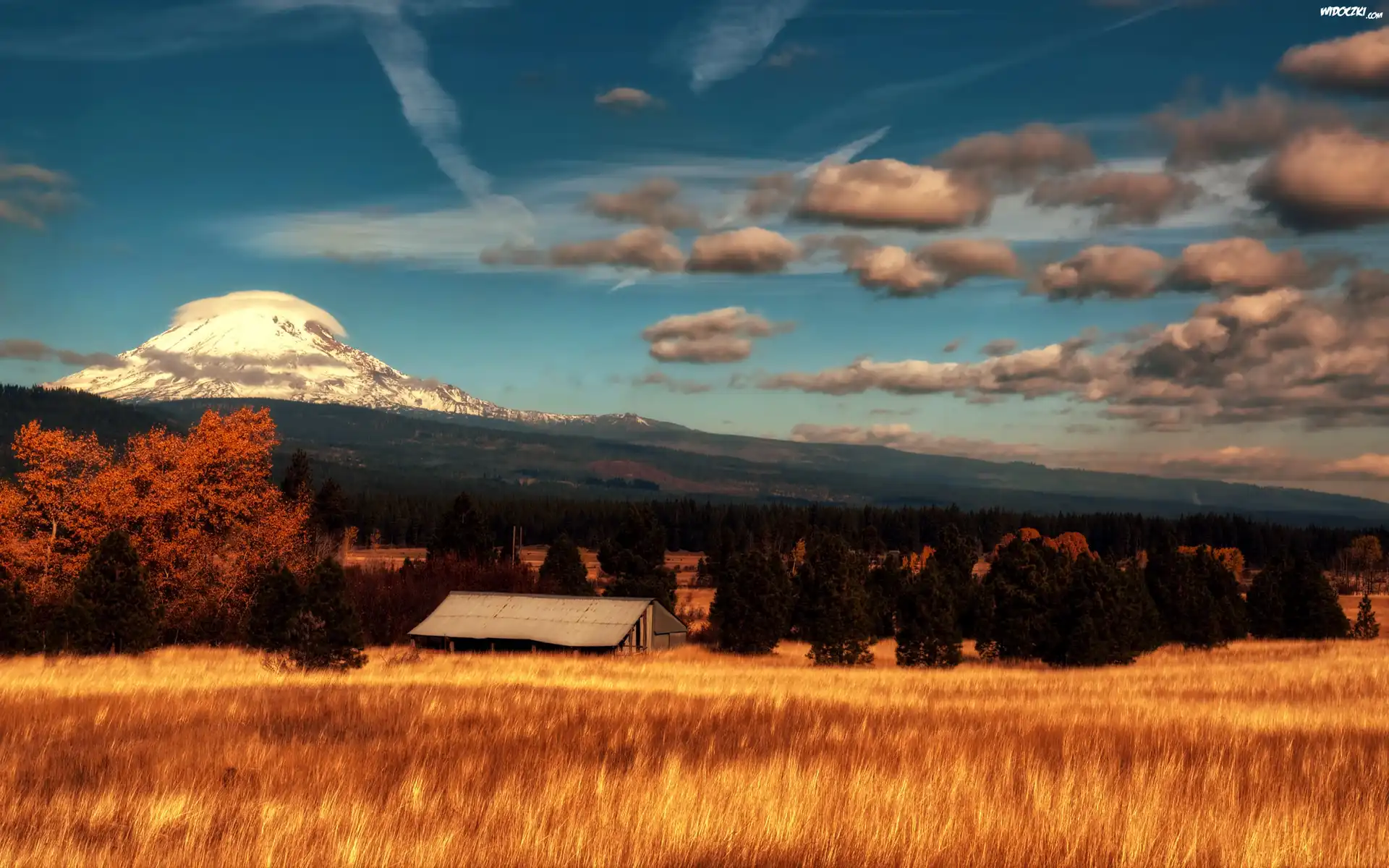 Zdjęcia, Góra, Chmury, Chata, Łąka, Las
