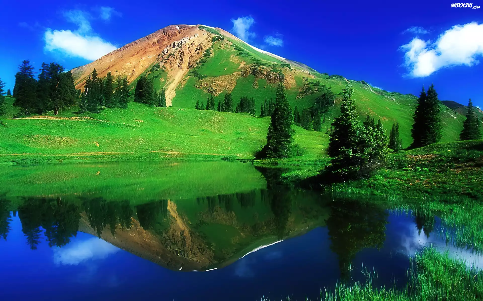Zdjęcia, Góra, Jezioro, Drzewa, Iglaste