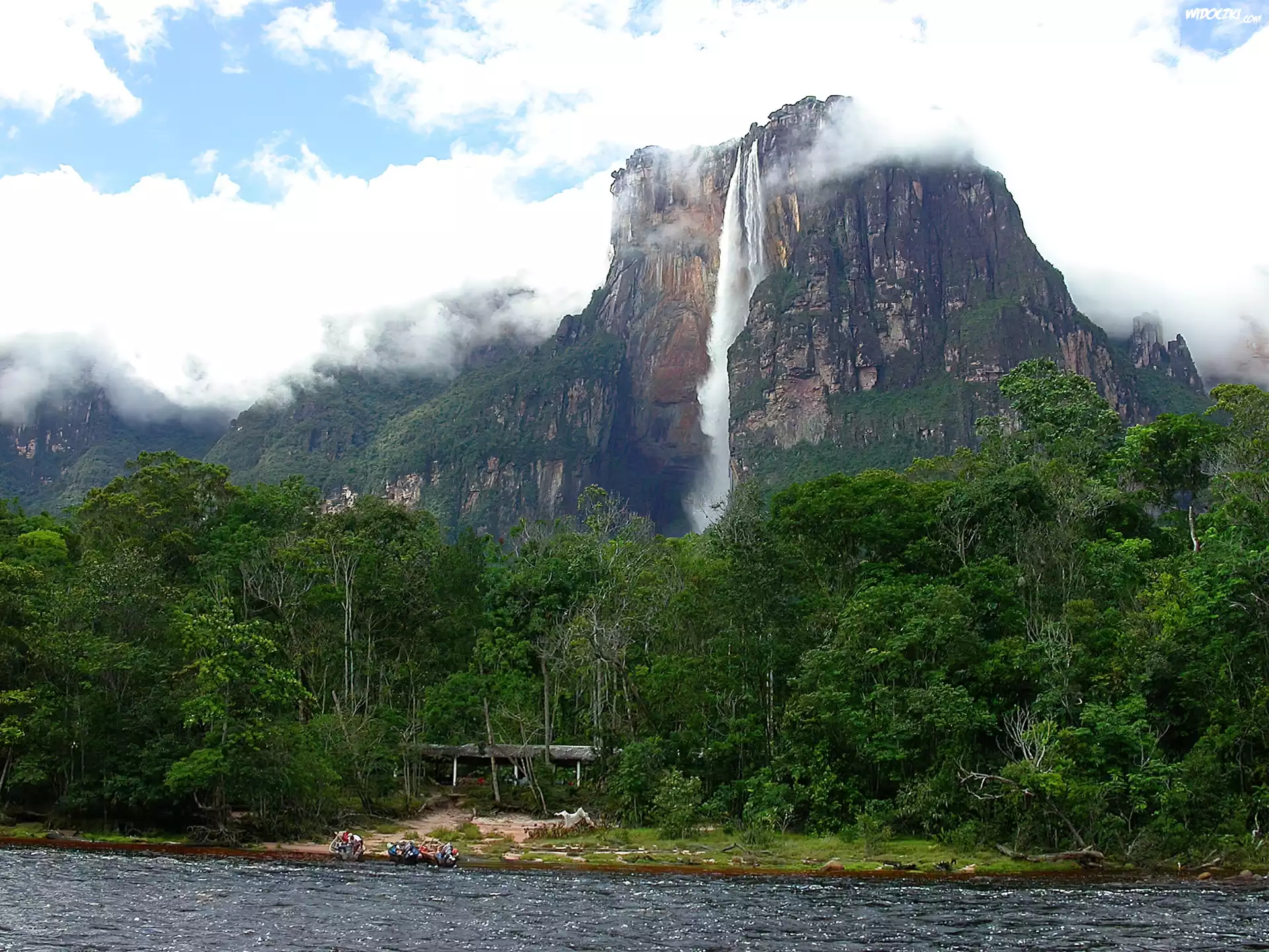 Zdjęcia, Góra, Wodospad, Drzewa, Rzeka