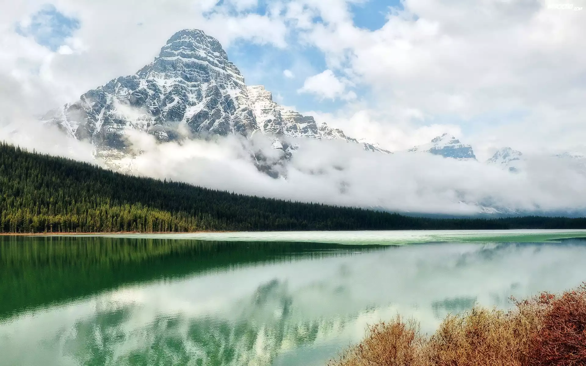 Góra, Wysokość, Śnieg, Jezioro, Las