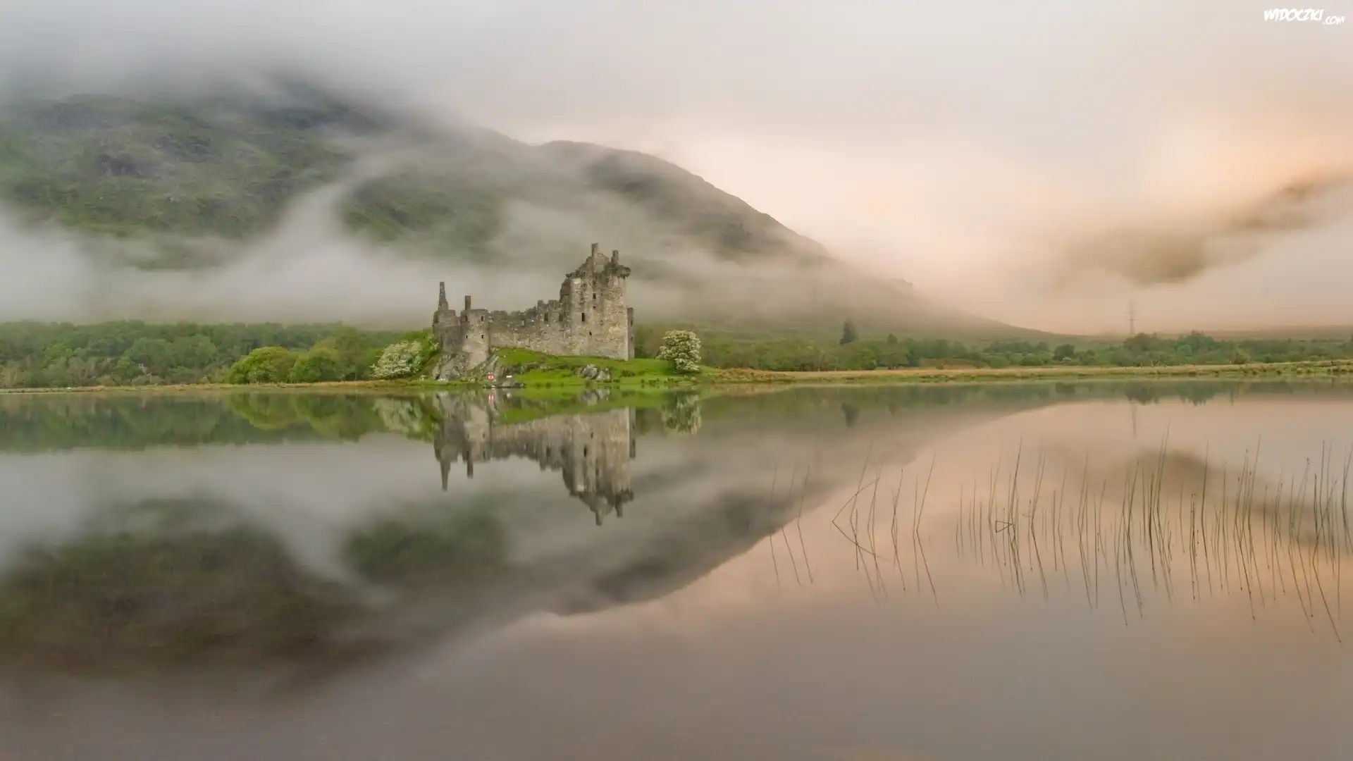 Zdjęcia, Góra, Ruiny, Jezioro, Odbicie