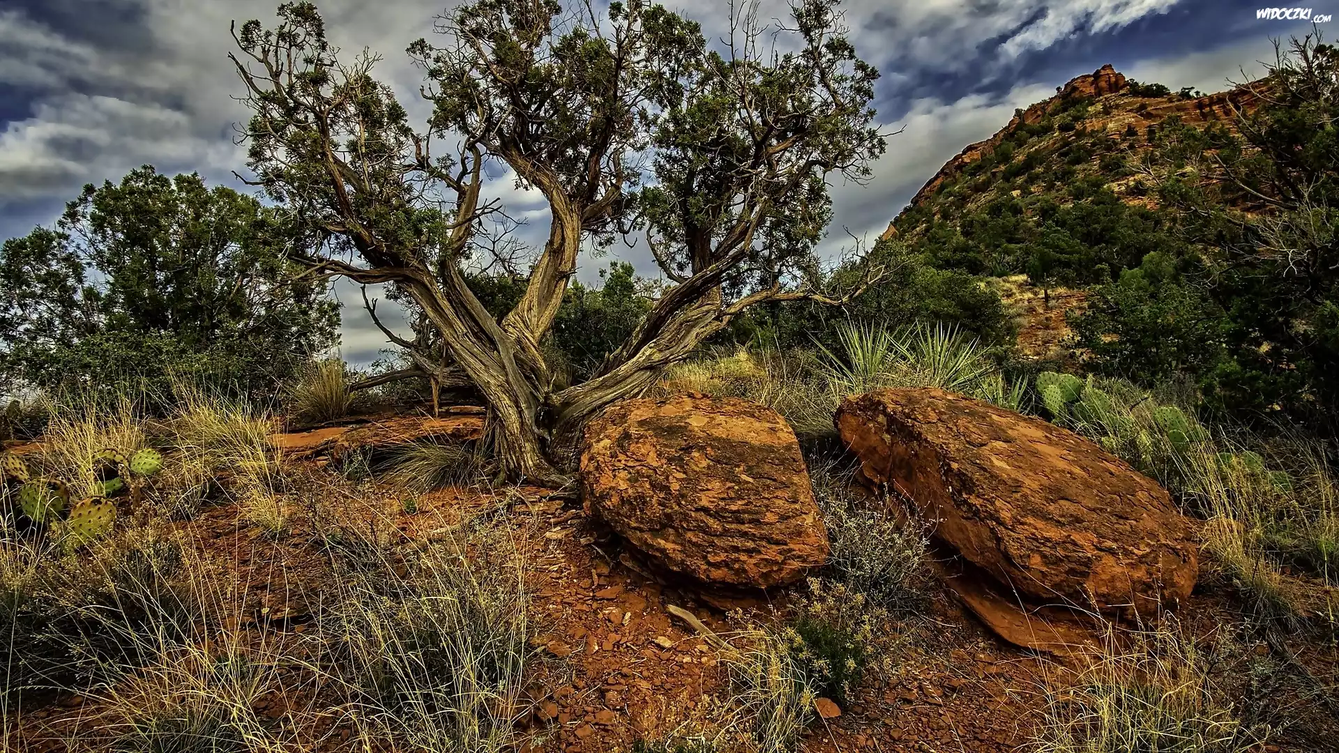 Zdjęcia, Góra, Drzewo, Kamienie, Trawy