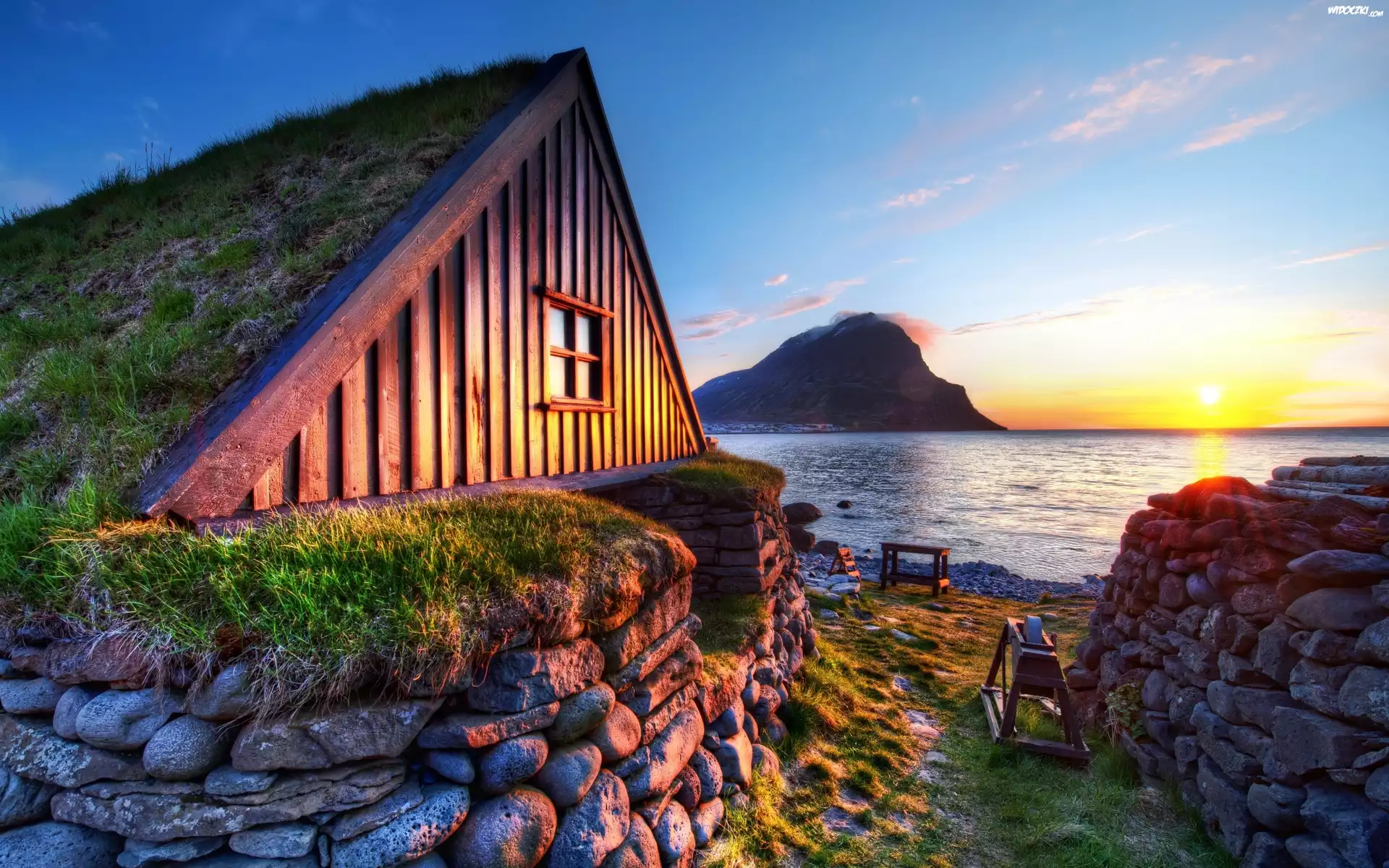 Zdjęcia, Góra, Morze, Kamienie, Chata