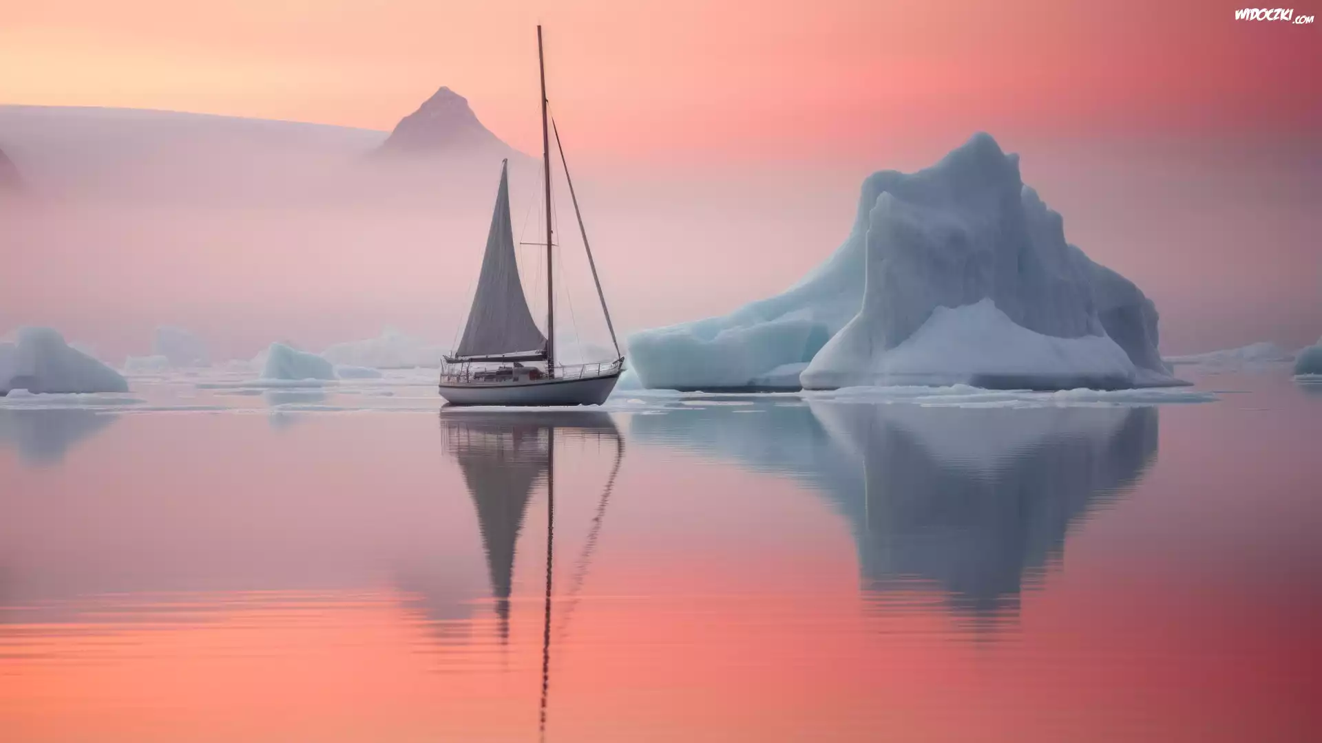 Żaglówka, Góra lodowa, Wschód słońca
