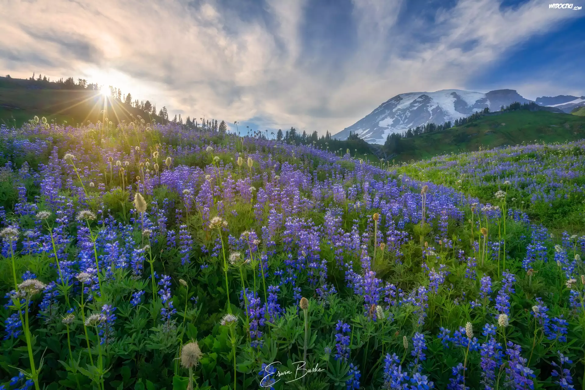 Stany Zjednoczone, Waszyngton, Park Narodowy Mount Rainier, Góra, Mount Rainier, Wzgórza, Polana, Kwiaty, Łubin, Łąka |