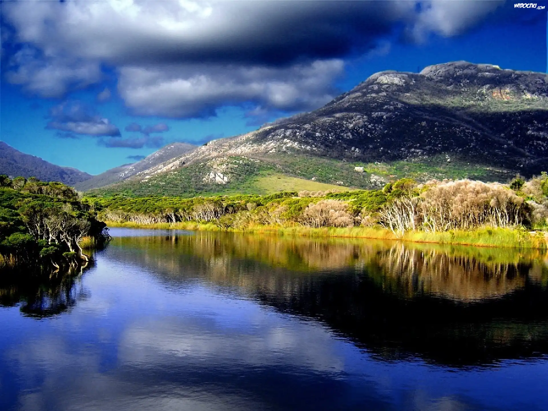 Góra, Chmury, Rzeka, Krajobraz