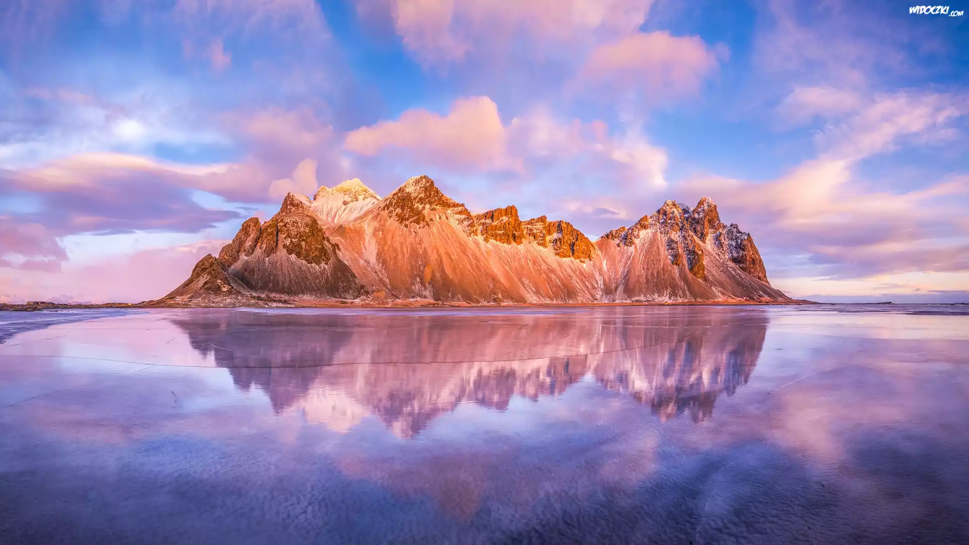 Zdjęcia, Islandia, Góra, Vestrahorn, Morze, Odbicie
