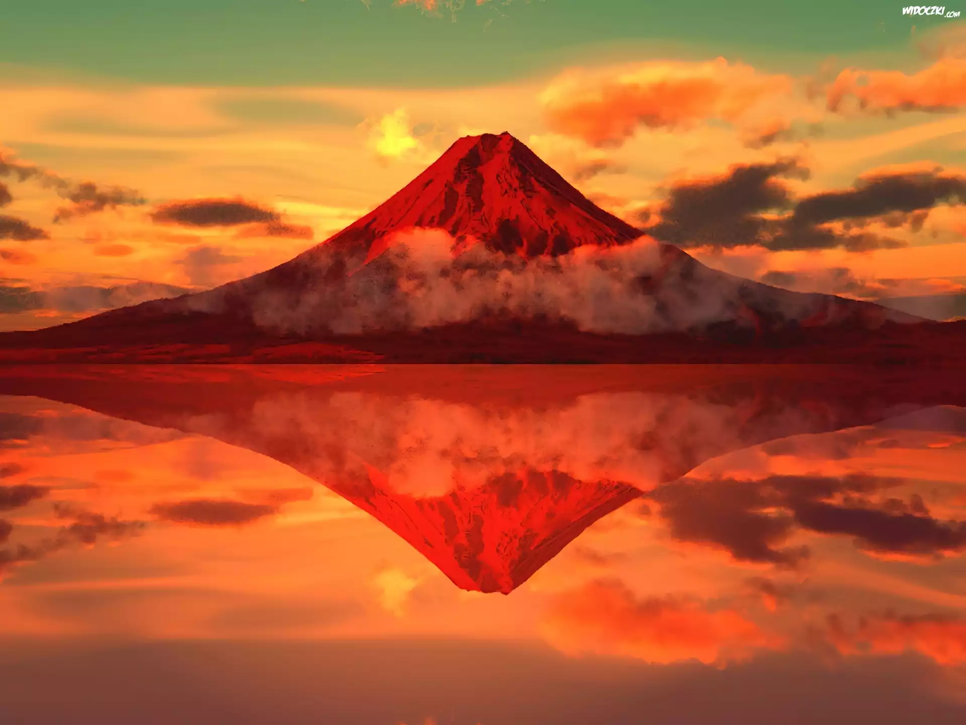 Zdjęcia, Góra, Chmury, Zachód, Słońca, Woda, Odbicie