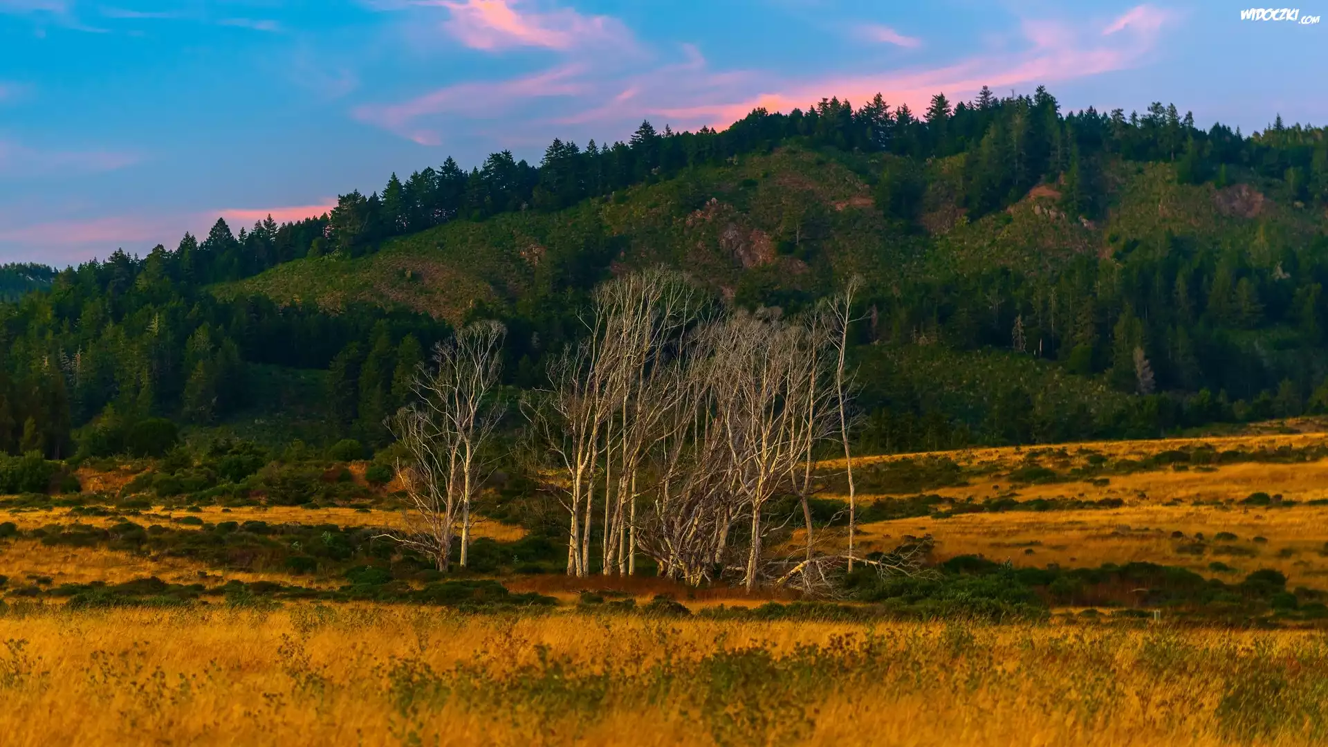 Zdjęcia, Góra, Bezlistne, Drzewa, Trawa, Zalesione, Wzgórze