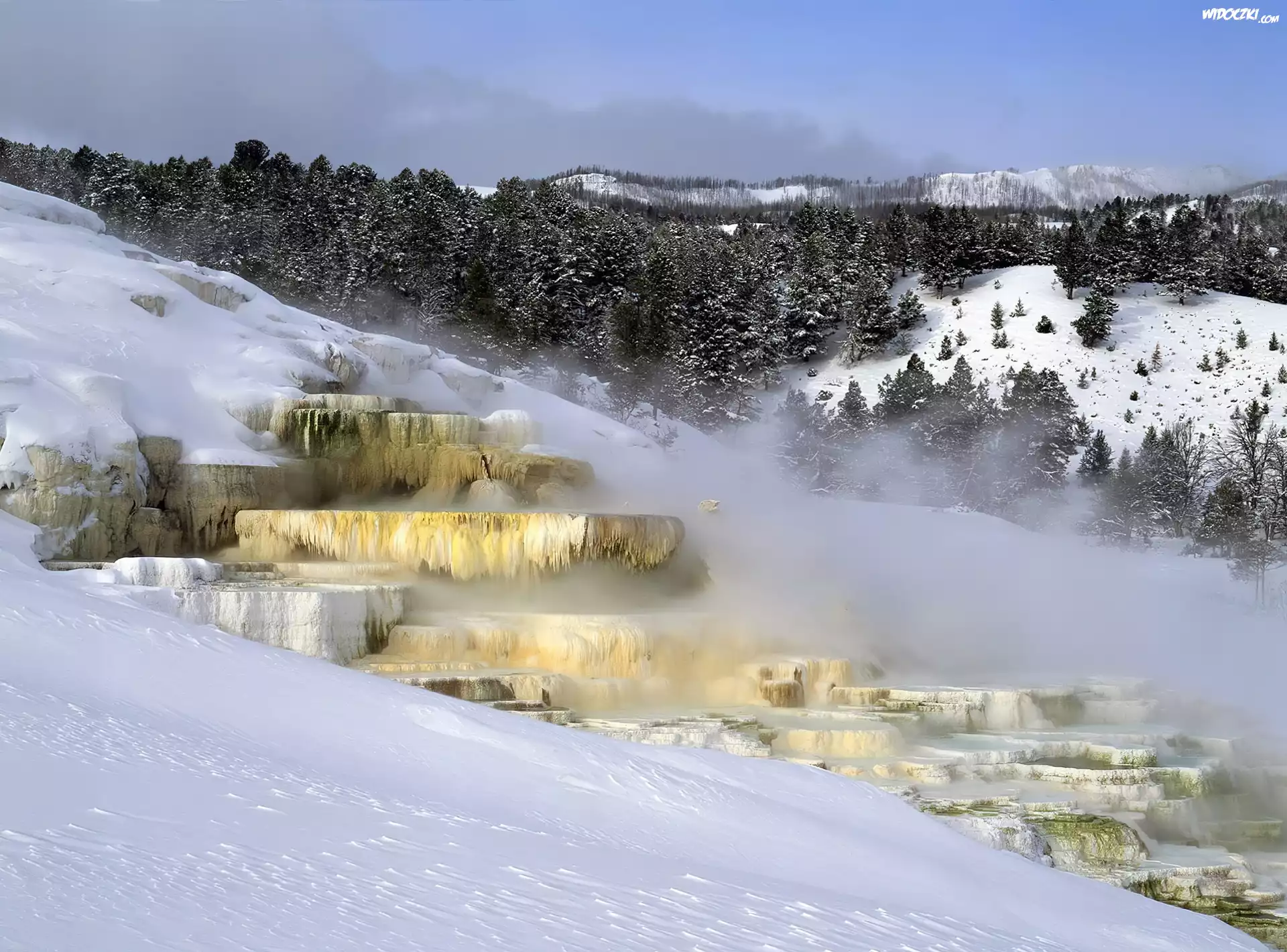 Zdjęcia, Górki, Rzeczka, Kaskada, Zamarznięta, Woda, Zima