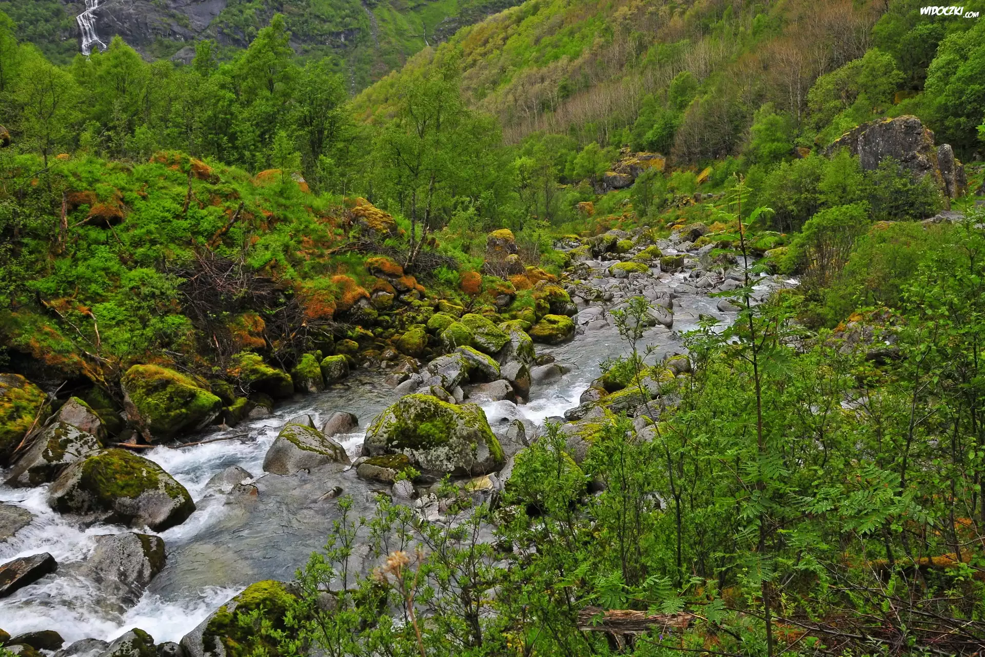 Zdjęcia, Górska, Rzeczka, Kamienie, Krzewy