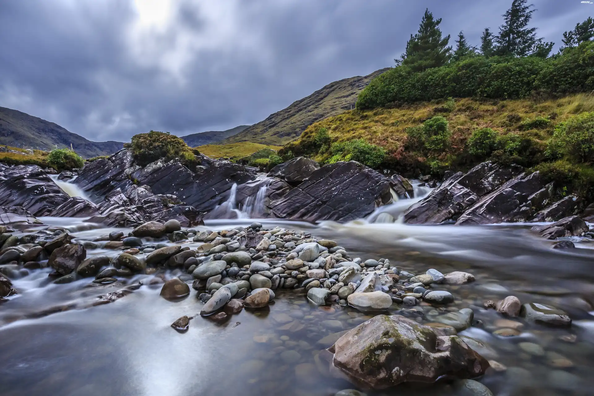 Górska, Rzeka, Kamienie, Skały, Drzewa