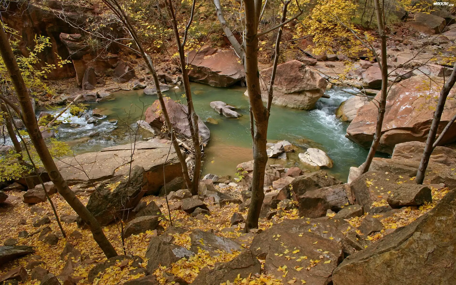 Zdjęcia, Górska, Rzeka, Skały, Drzewa