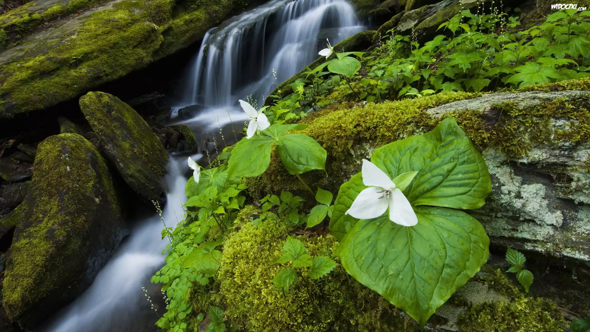 Zdjęcia, Górski, Potok, Kwiaty, Mech