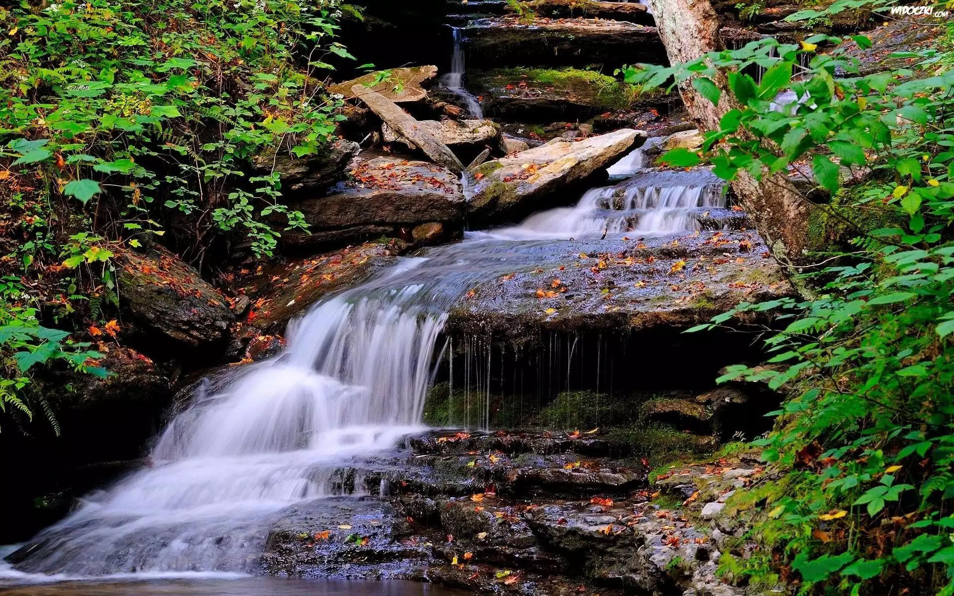 Zdjęcia, Górski, Wodospad, Skały, Jesień