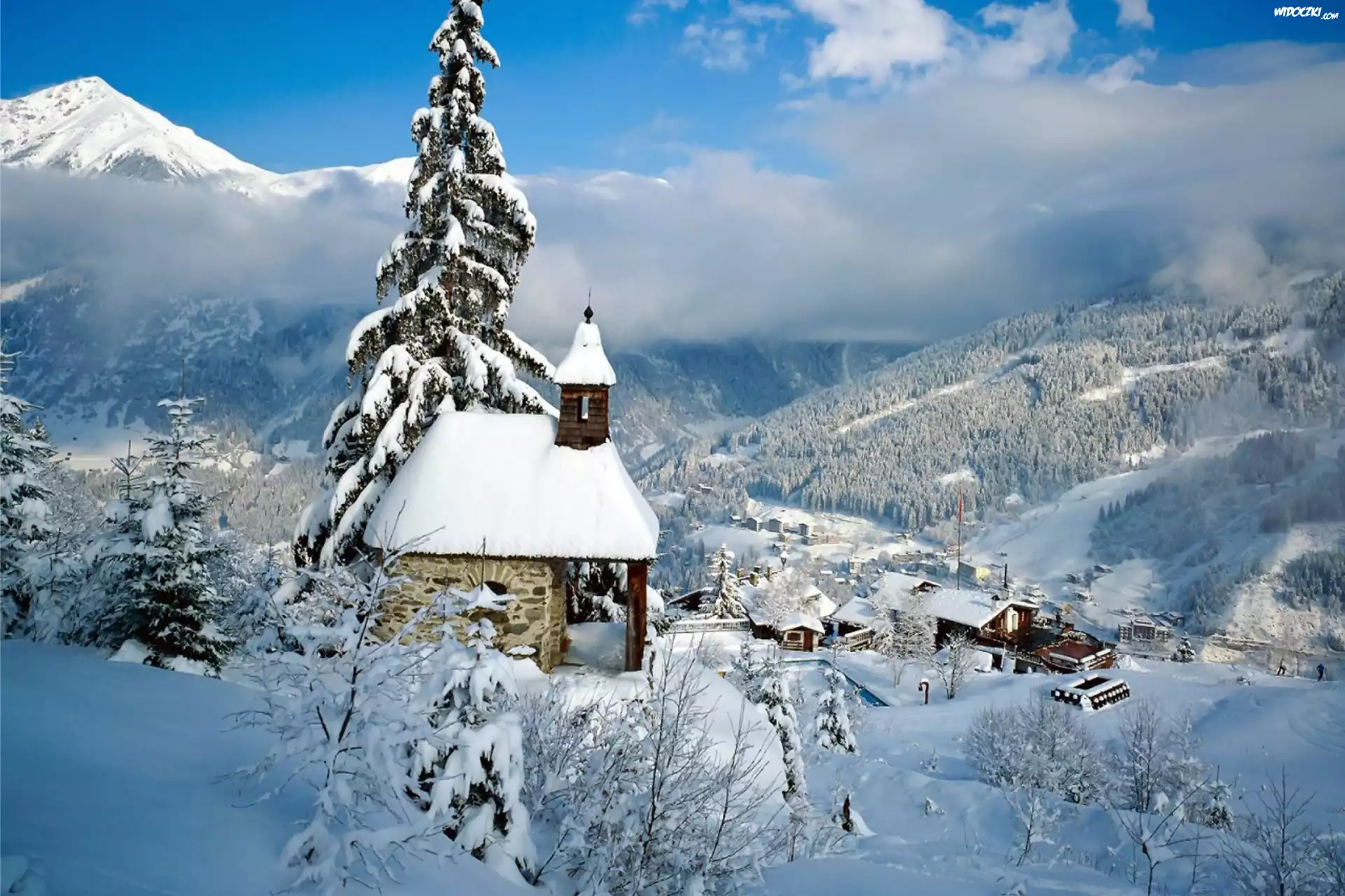 Zdjęcia, Górskie, Miasteczko, Kościółek, Zima