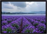 Zdjęcia, Lawenda, Pole, Mgła, Góry, Drzewa, AI