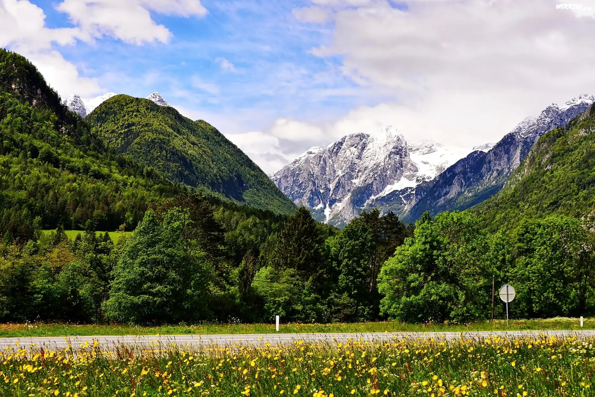 Zdjęcia, Góry, Las, Droga, Łąka, Chmury