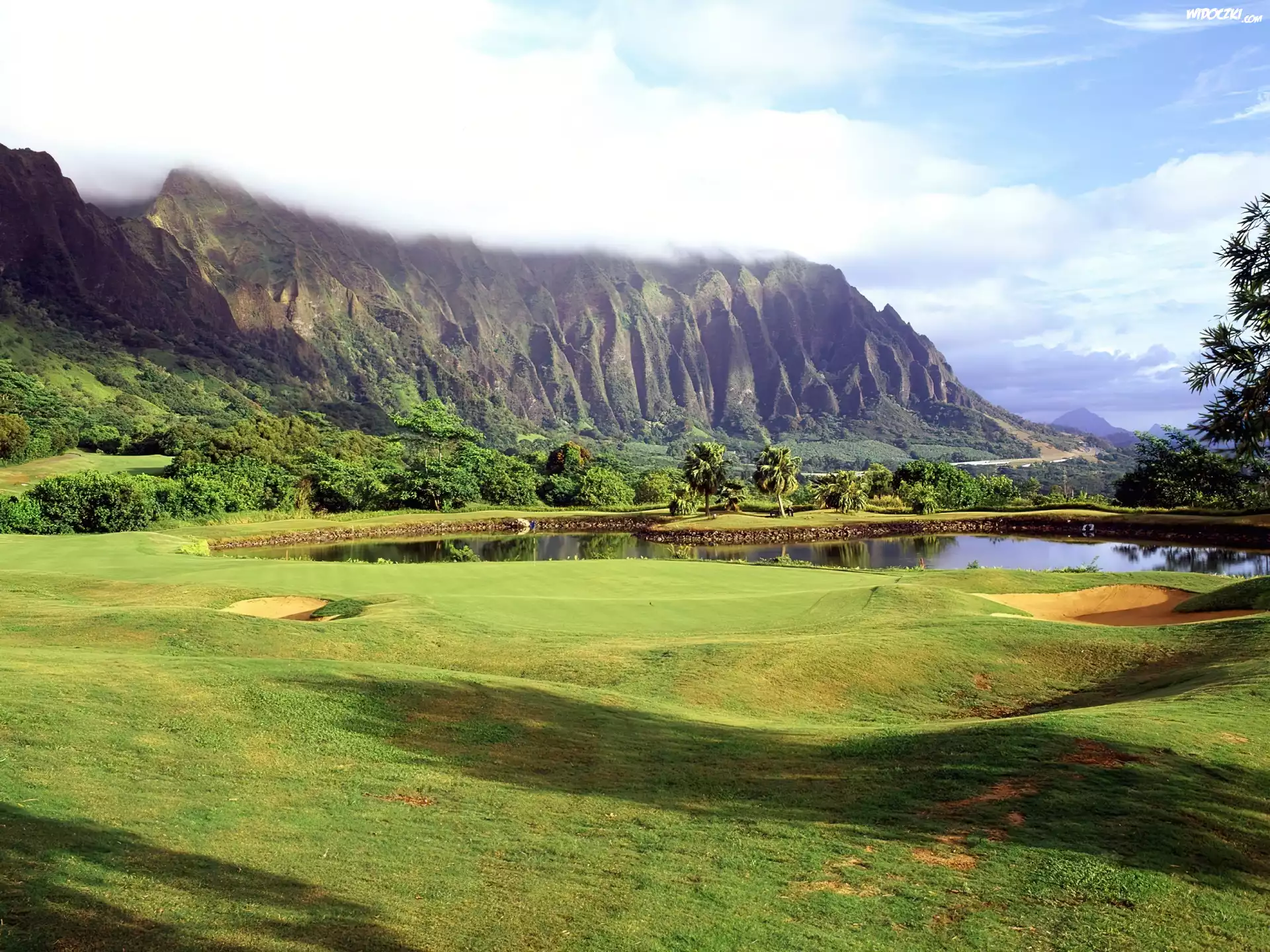 Góry, Drzewa, Łąka, Hawaje