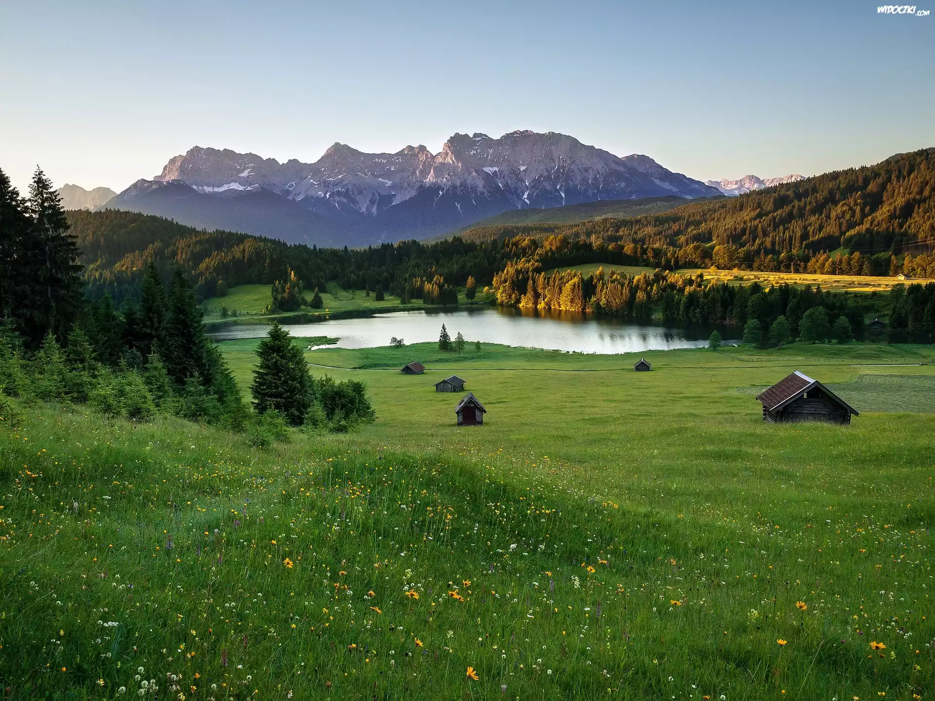 Zdjęcia, Góry, Lasy, Jeziorko, Łąka, Szałasy