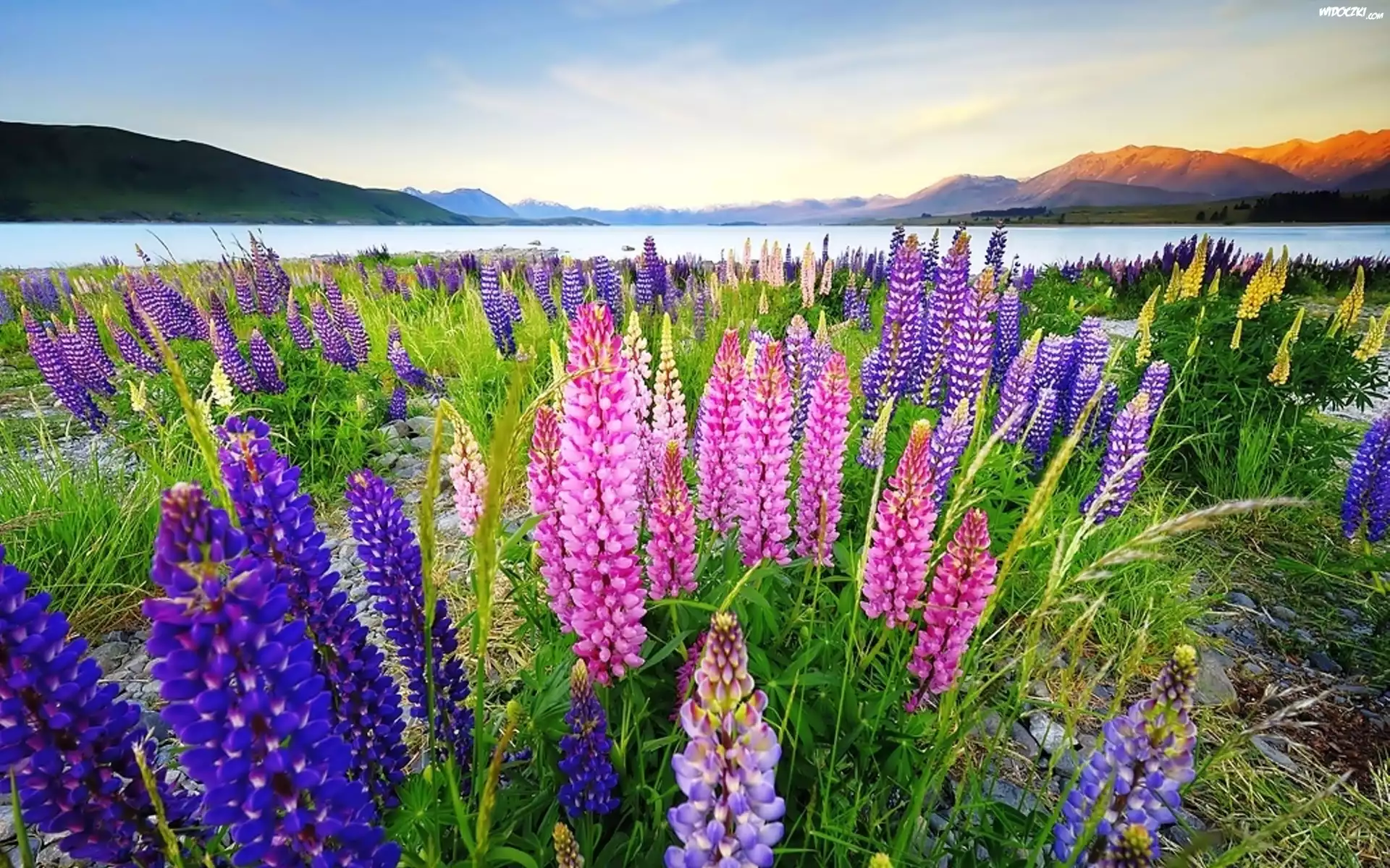Góry, Jezioro, Łąka, Łubin