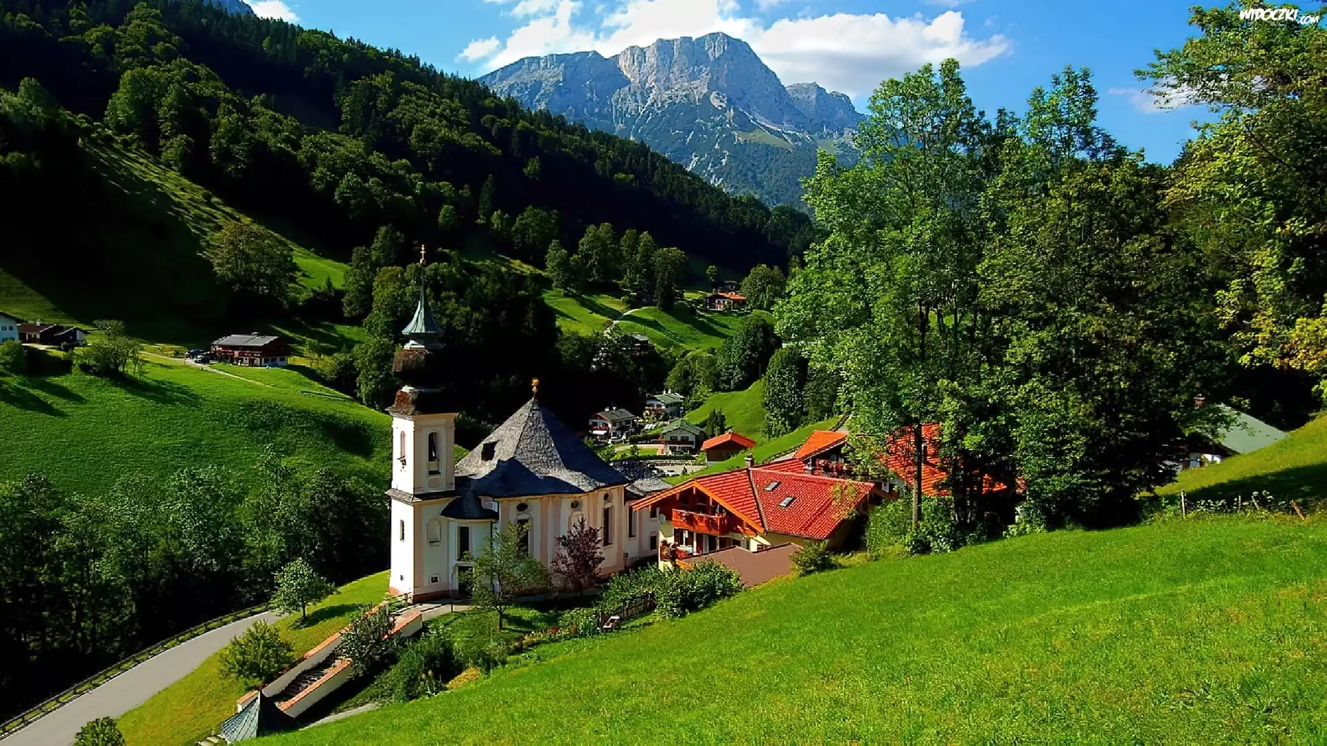 Zdjęcia, Góry, Kościół, Łąka, Drzewa