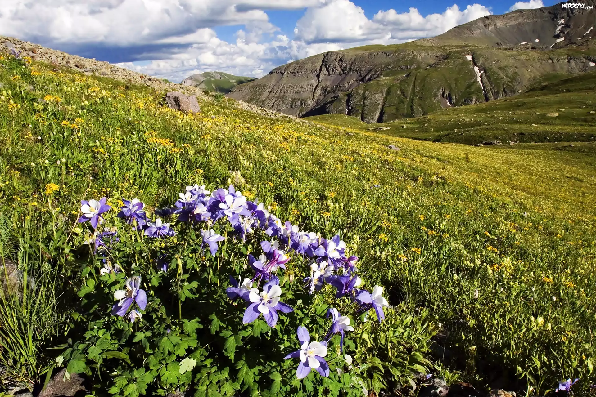 Zdjęcia, Góry, Obłoki, Łąka, Kwiaty