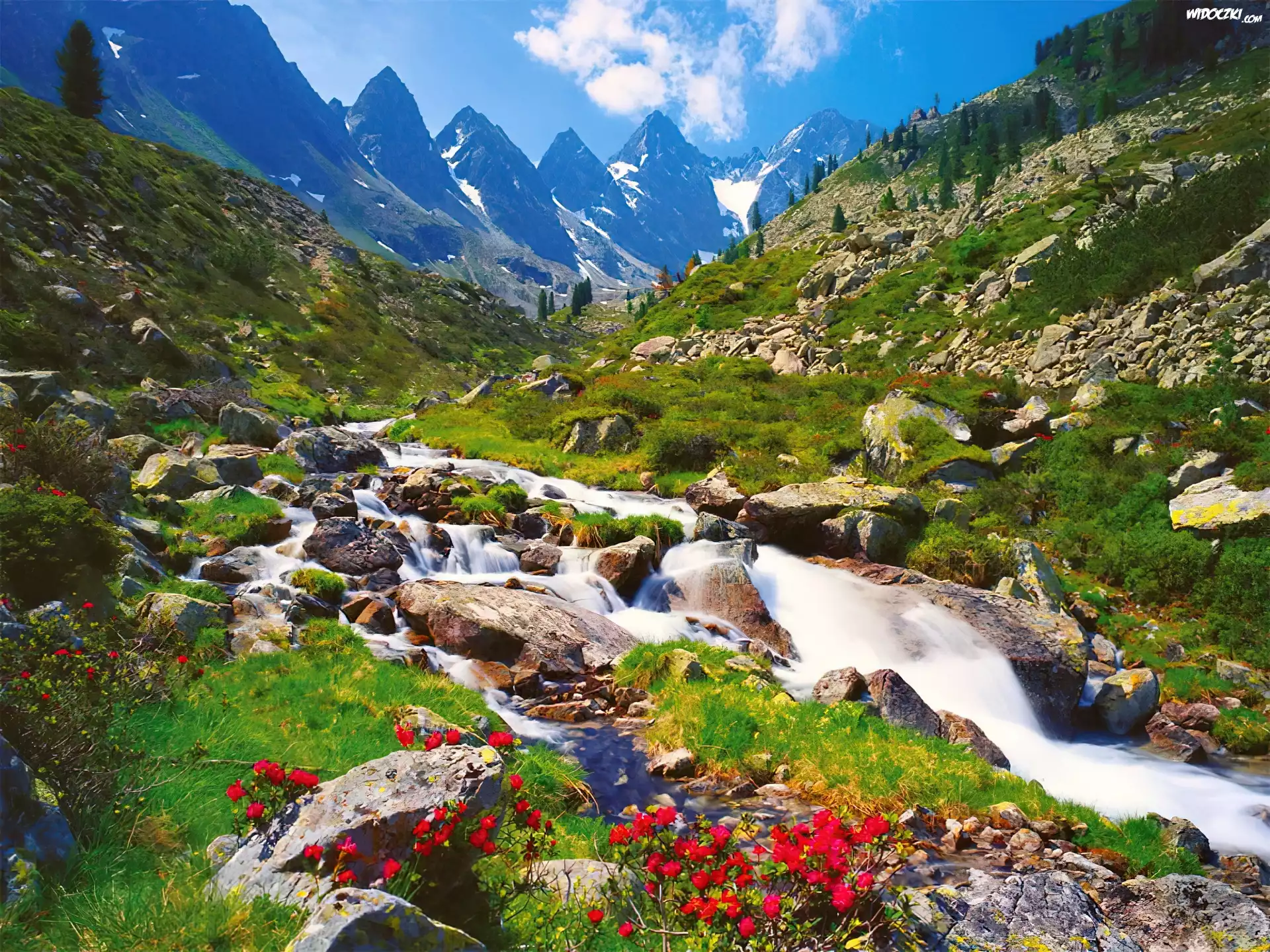 Zdjęcia, Góry, Strumyk, Łąka, Kwiaty