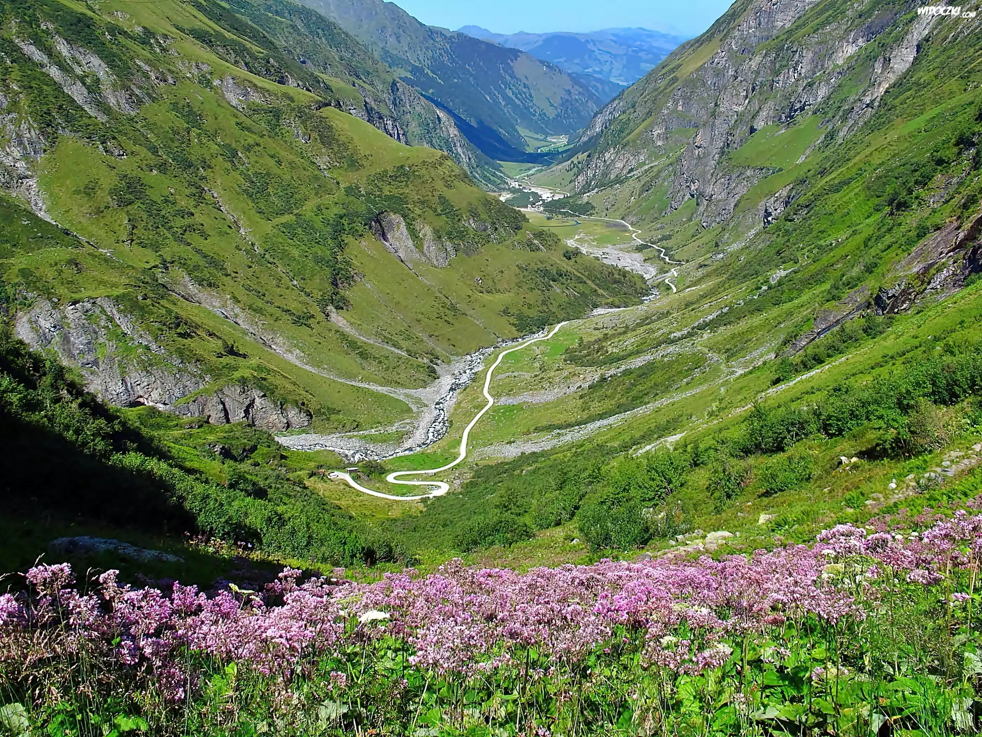 Zdjęcia, Góry, Wąwóz, Droga, Łąki, Kwiaty