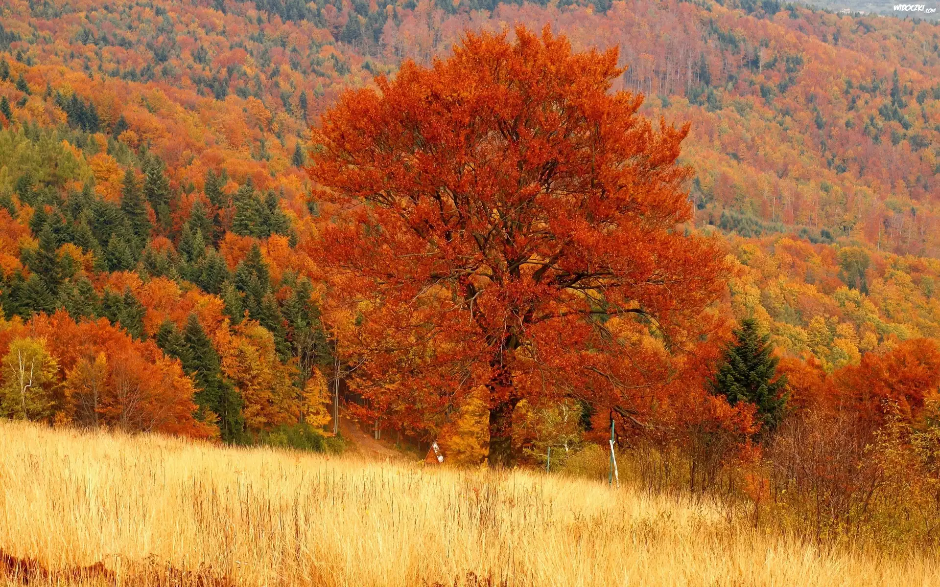 Zdjęcia, Góry, Lasy, Kolorowe, Drzewa, Łąki, Jesień