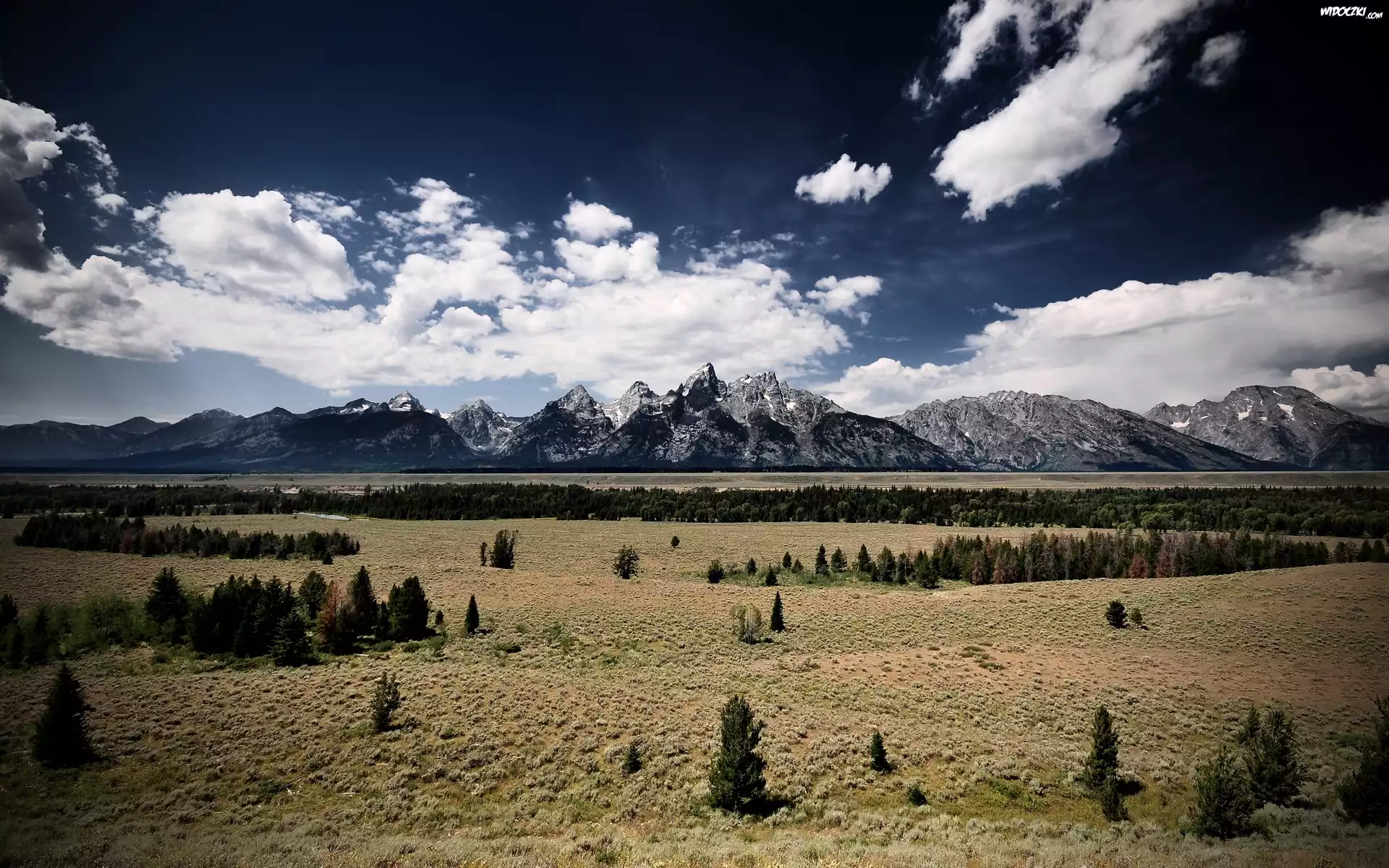 Zdjęcia, Góry, Lasy, Łąki, Obłoki