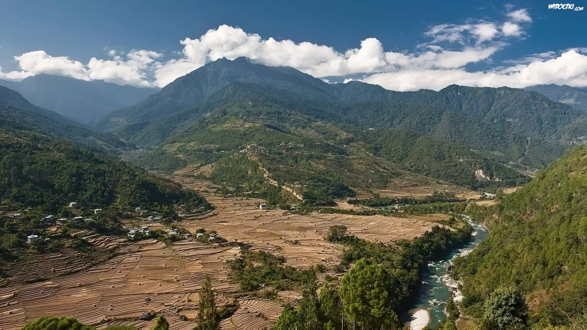Zdjęcia, Góry, Pola, Łąki, Rzeka