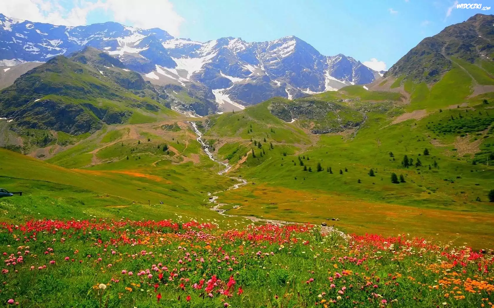Zdjęcia, Góry, Rzeczka, Łąki, Kwiaty