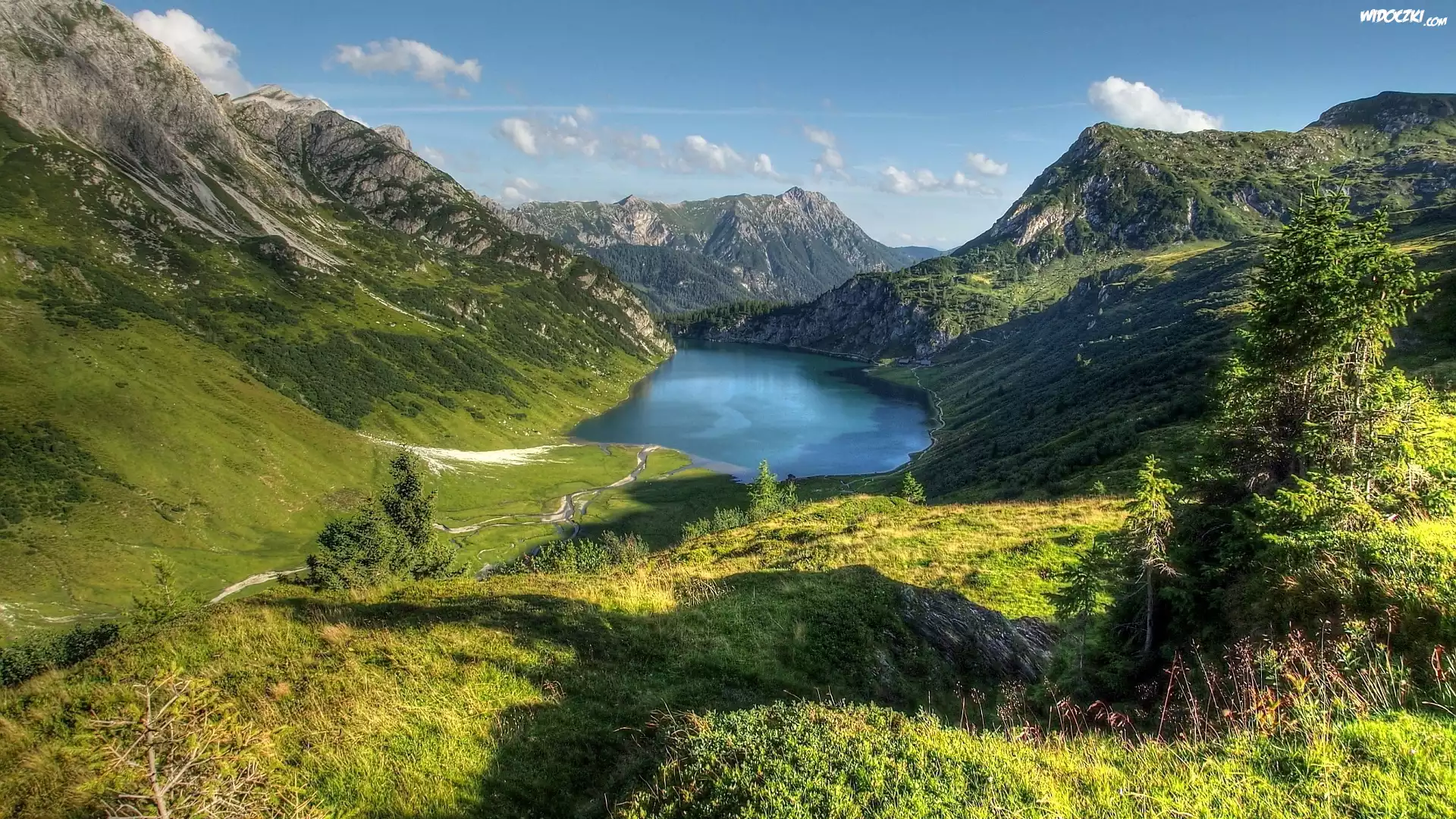 Zdjęcia, Góry, Jezioro, Łąka, Alpy, Austria