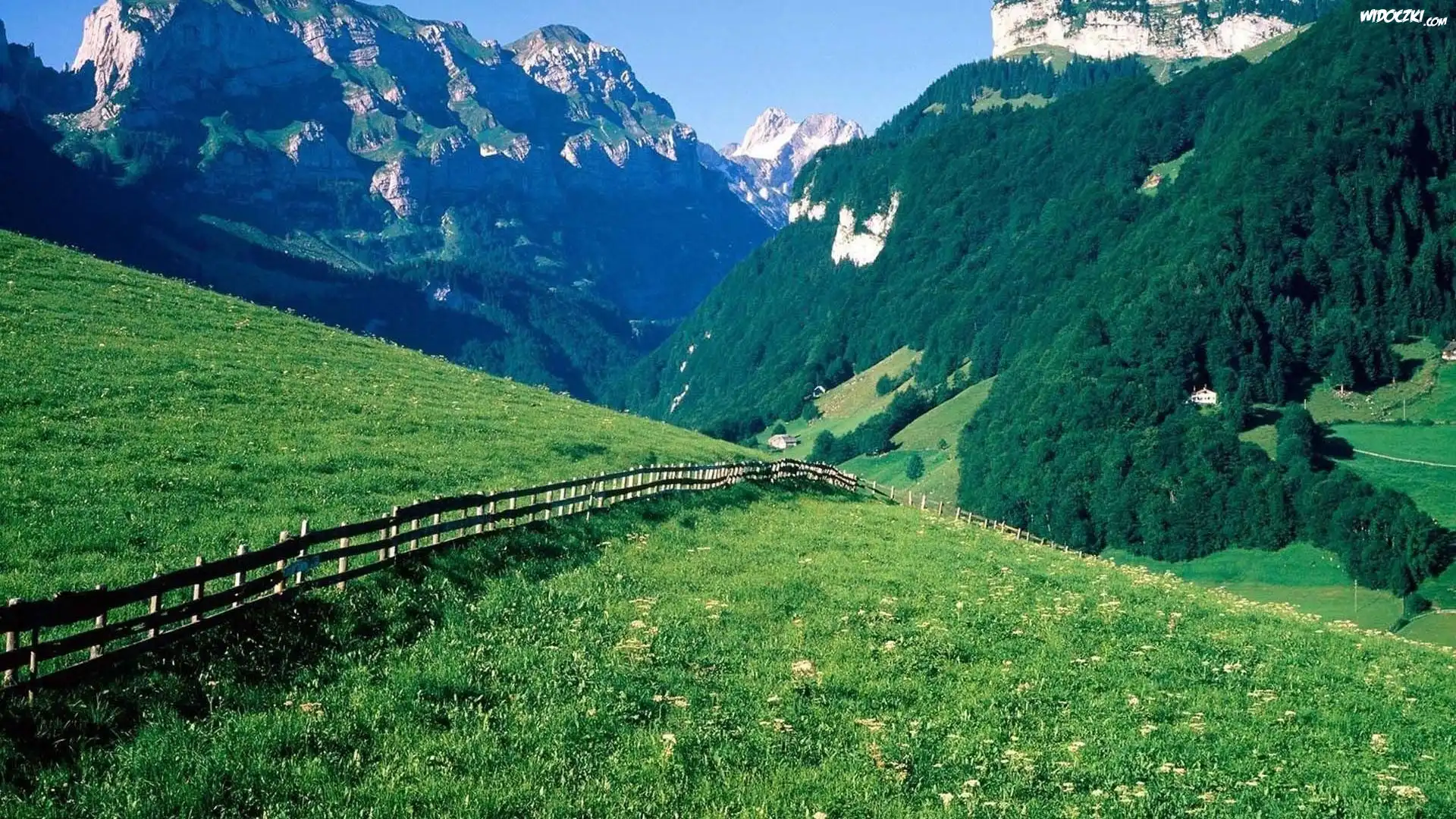 Góry, Las, Łąka, Ogrodzenie, Alpy, Szwajcaria