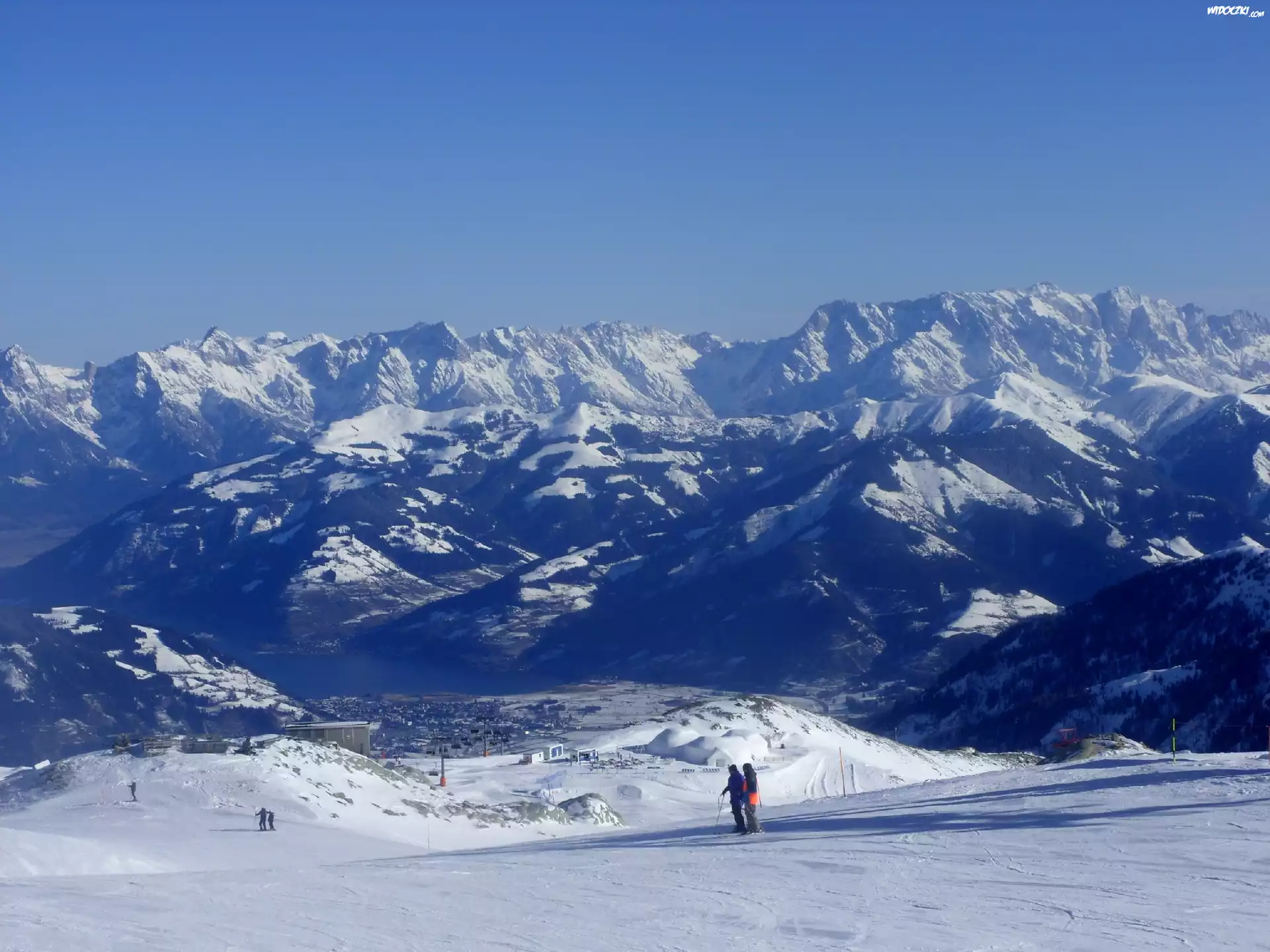 Zdjęcia, Góry, Śnieg, Alpy, Narciarze