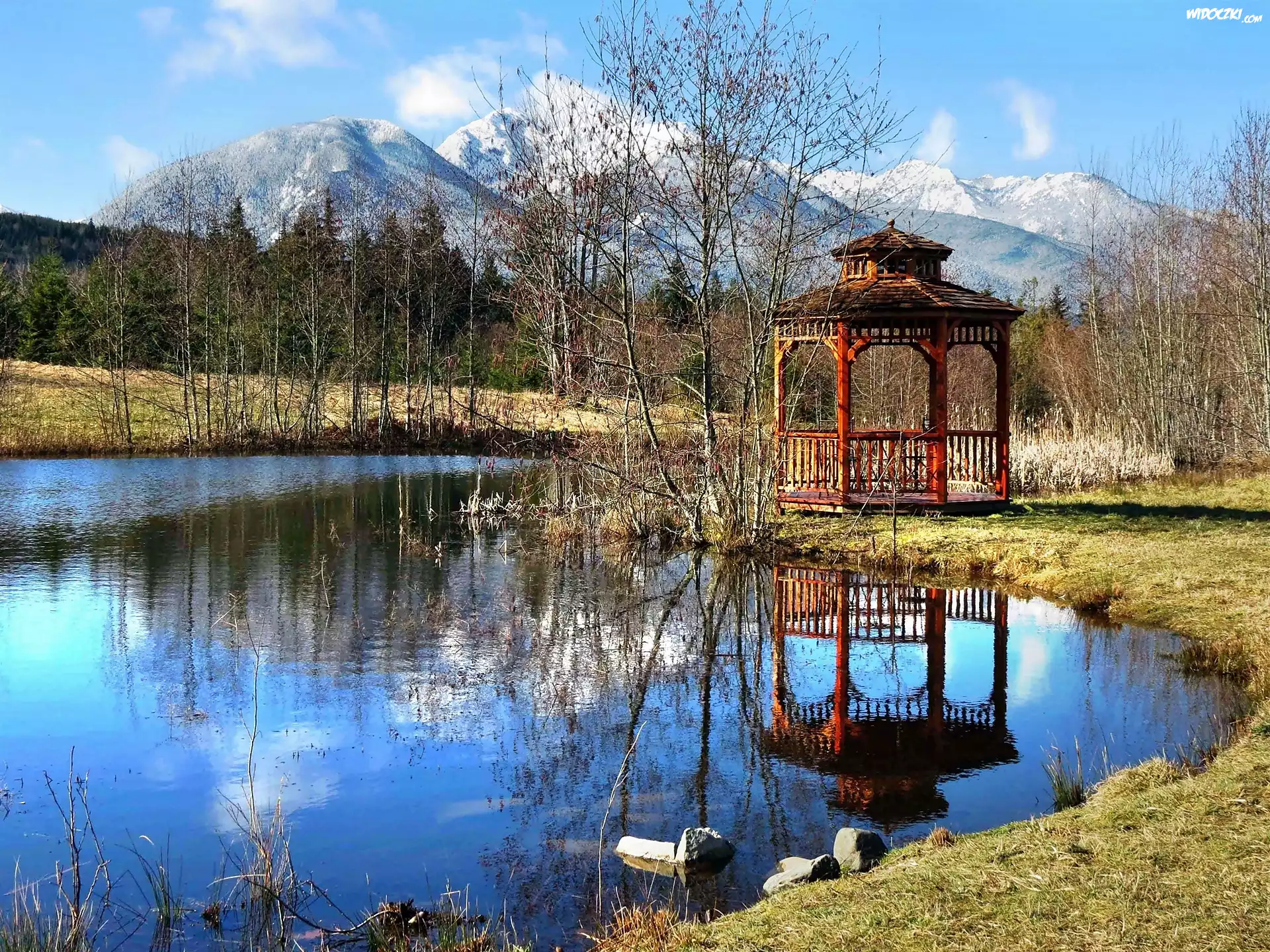 Zdjęcia, Góry, Las, Jezioro, Altanka, Odbicie