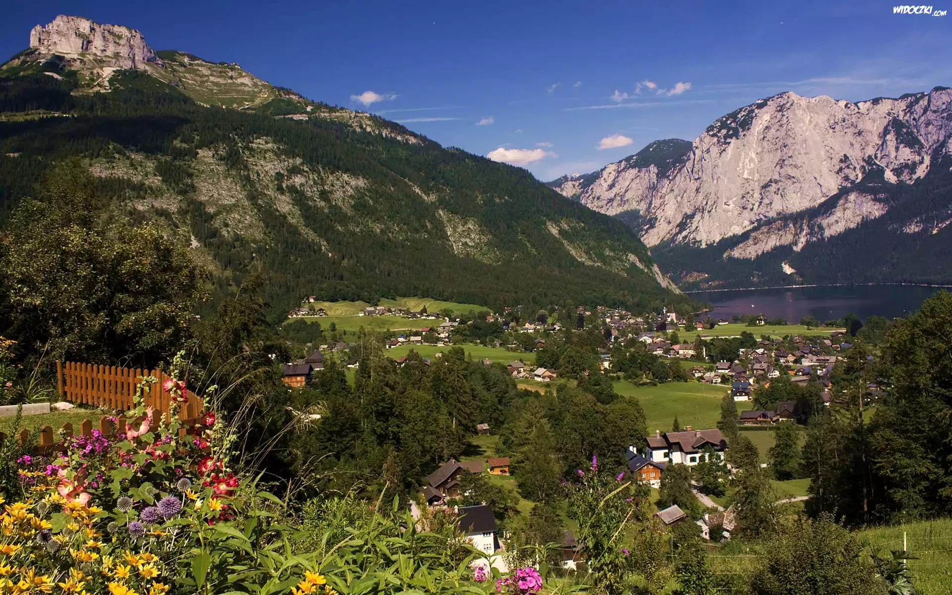 Zdjęcia, Góry, Jezioro, Domy, Austria, Wieś