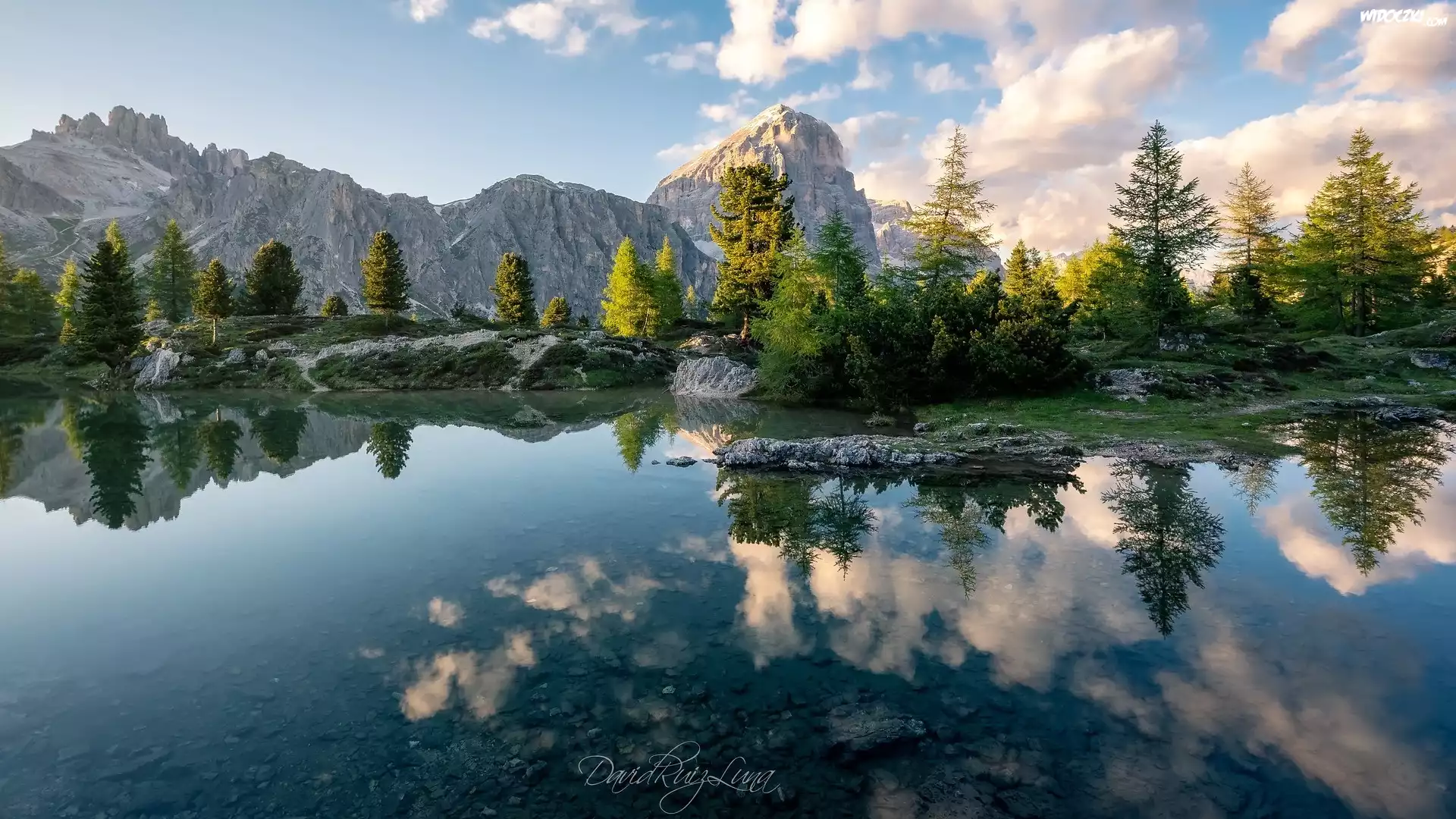Zdjęcia, Góry, Dolomity, Jezioro, Lago Limides, Drzewa, Odbicie, Prowincja Belluno, Włochy