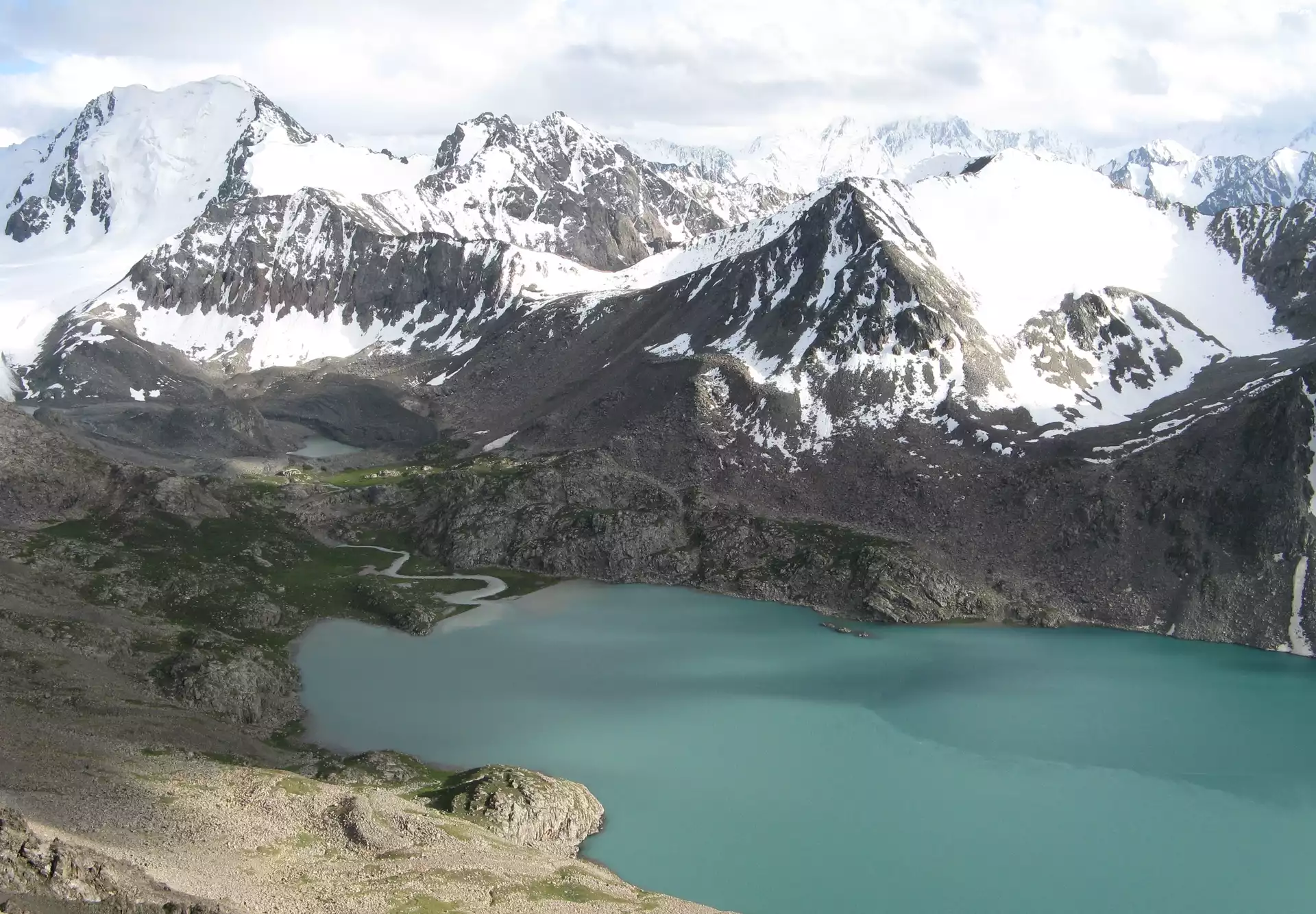 Zdjęcia, góry, jezioro, białe, chmury