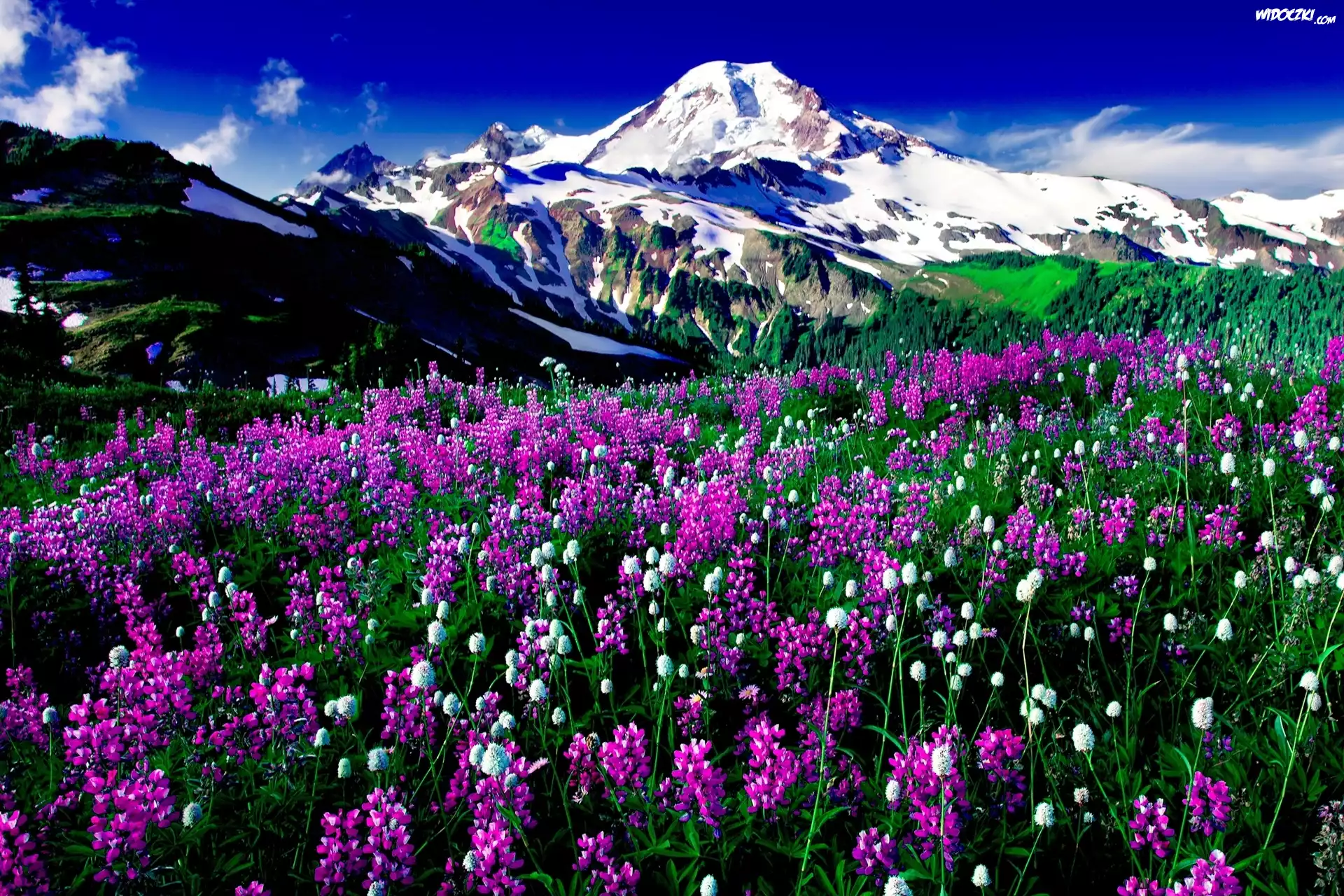 Zdjęcia, Góry, Purpurowo, Białe, Kwiaty