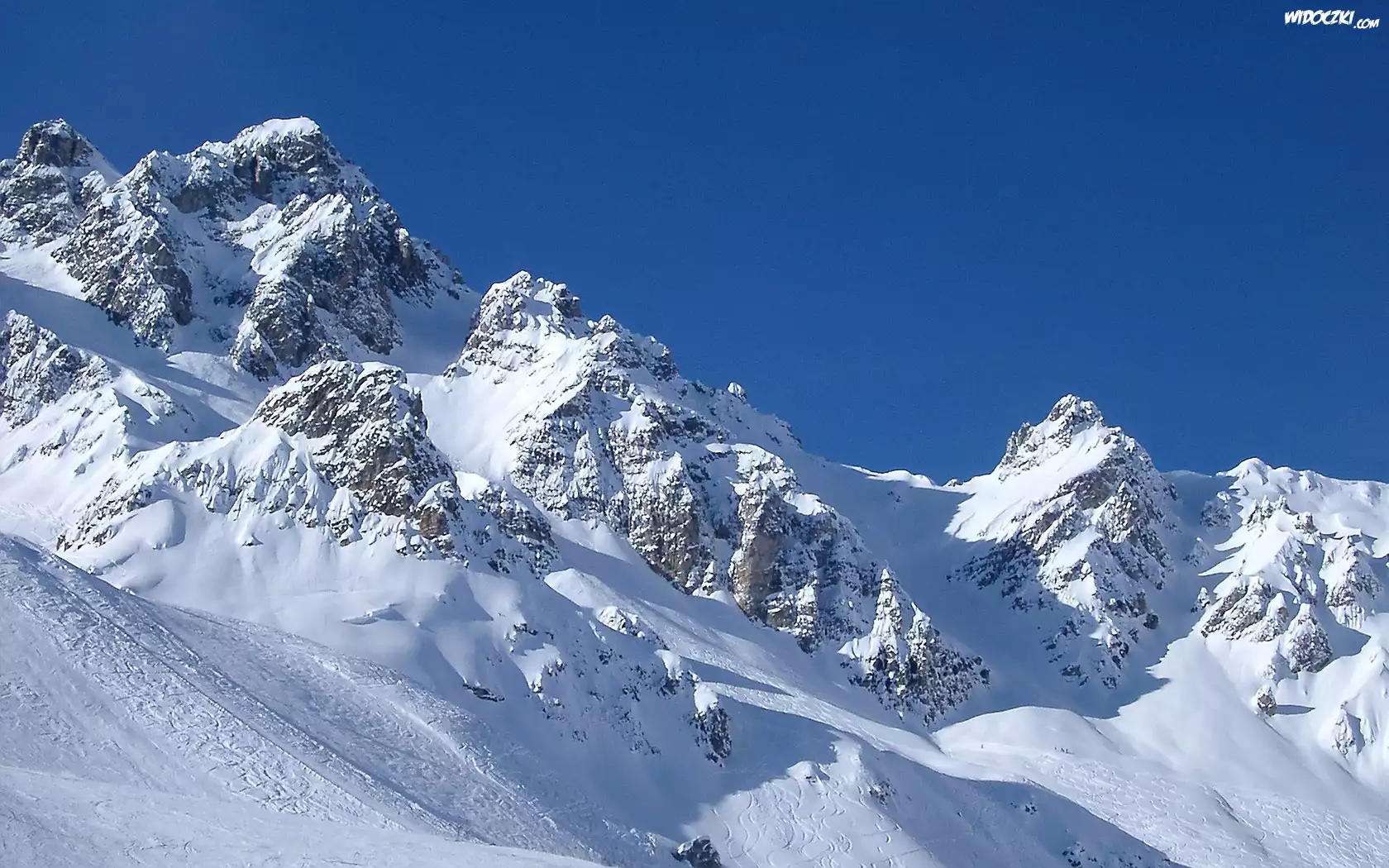 Zdjęcia, Góry, Śnieg, Błękitne, Niebo