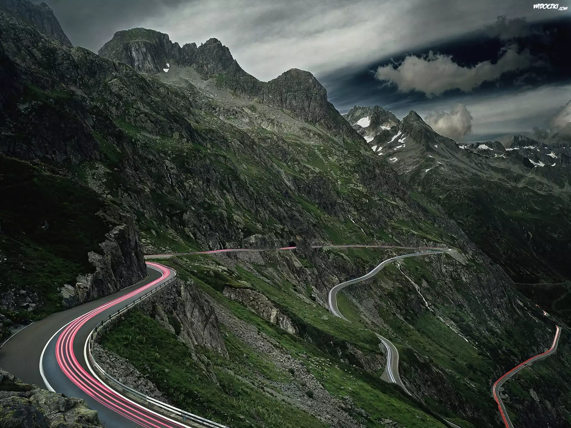 Zdjęcia, Góry, Kręta, Droga, Burzowe, Chmury