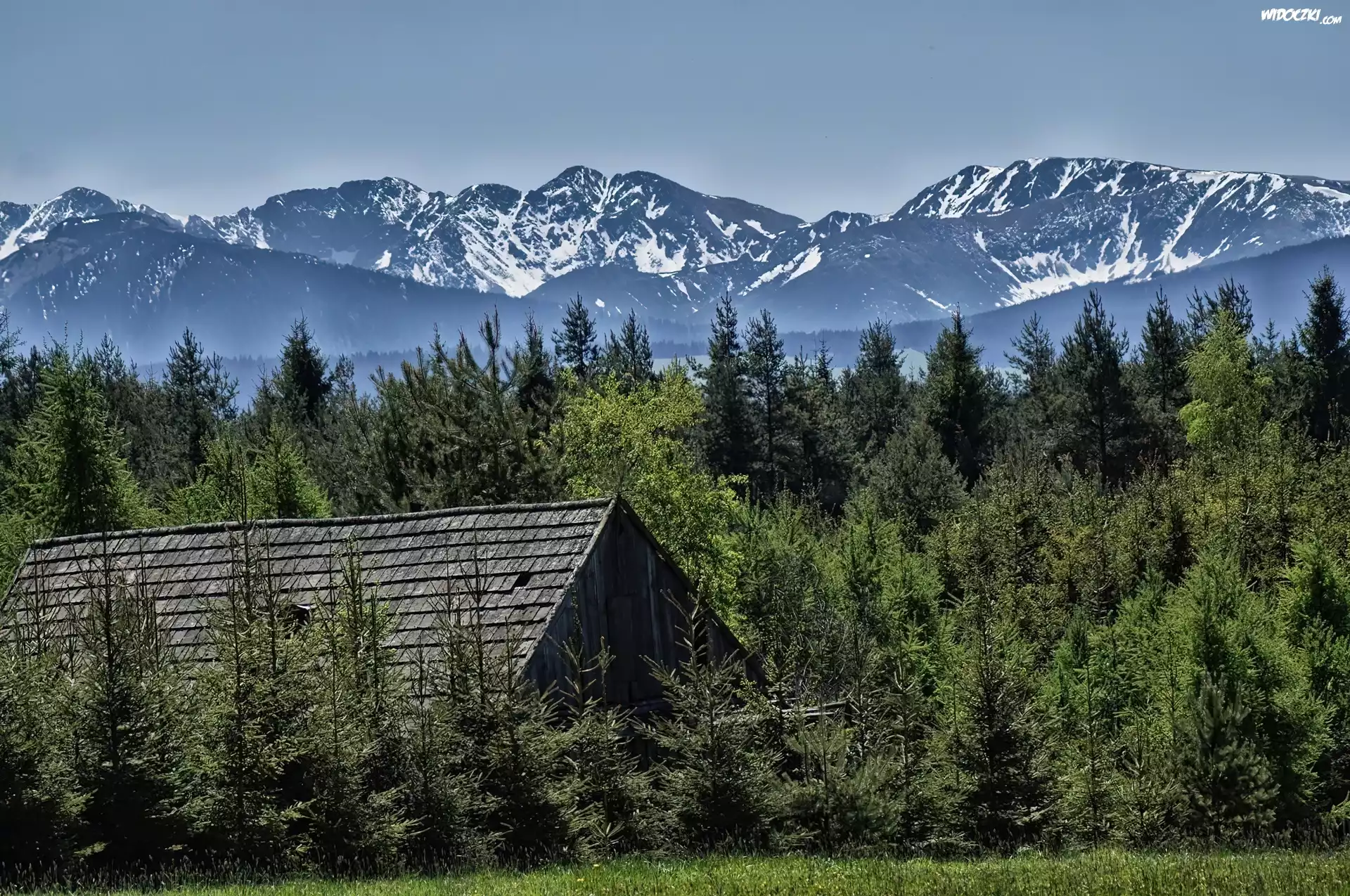 Zdjęcia, Góry, Las, Chata, Drewnianna