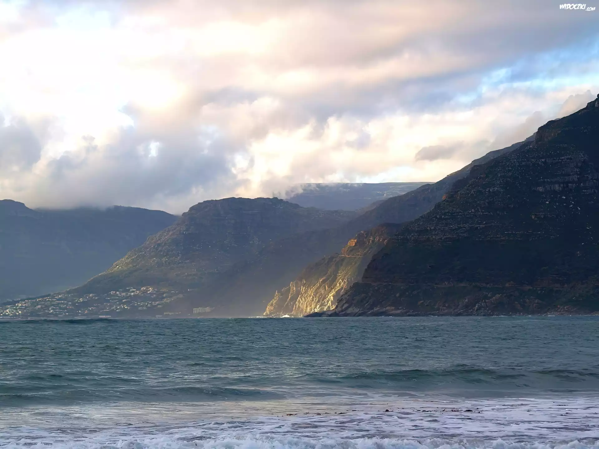 Góry, Morze, Niebo, Chmura, Fale
