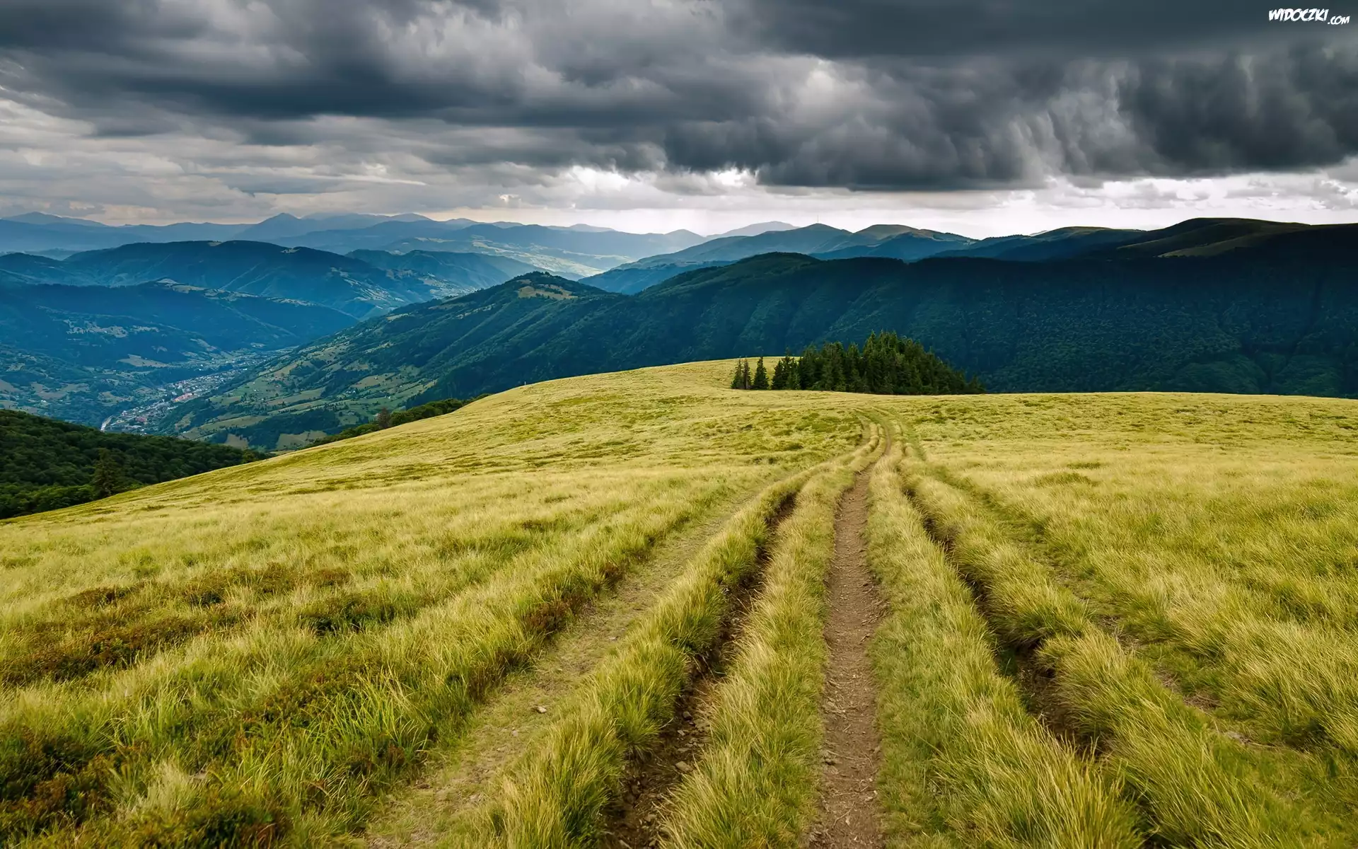 Zdjęcia, Góry, Lasy, Łąki, Droga, Chmury, Karpaty